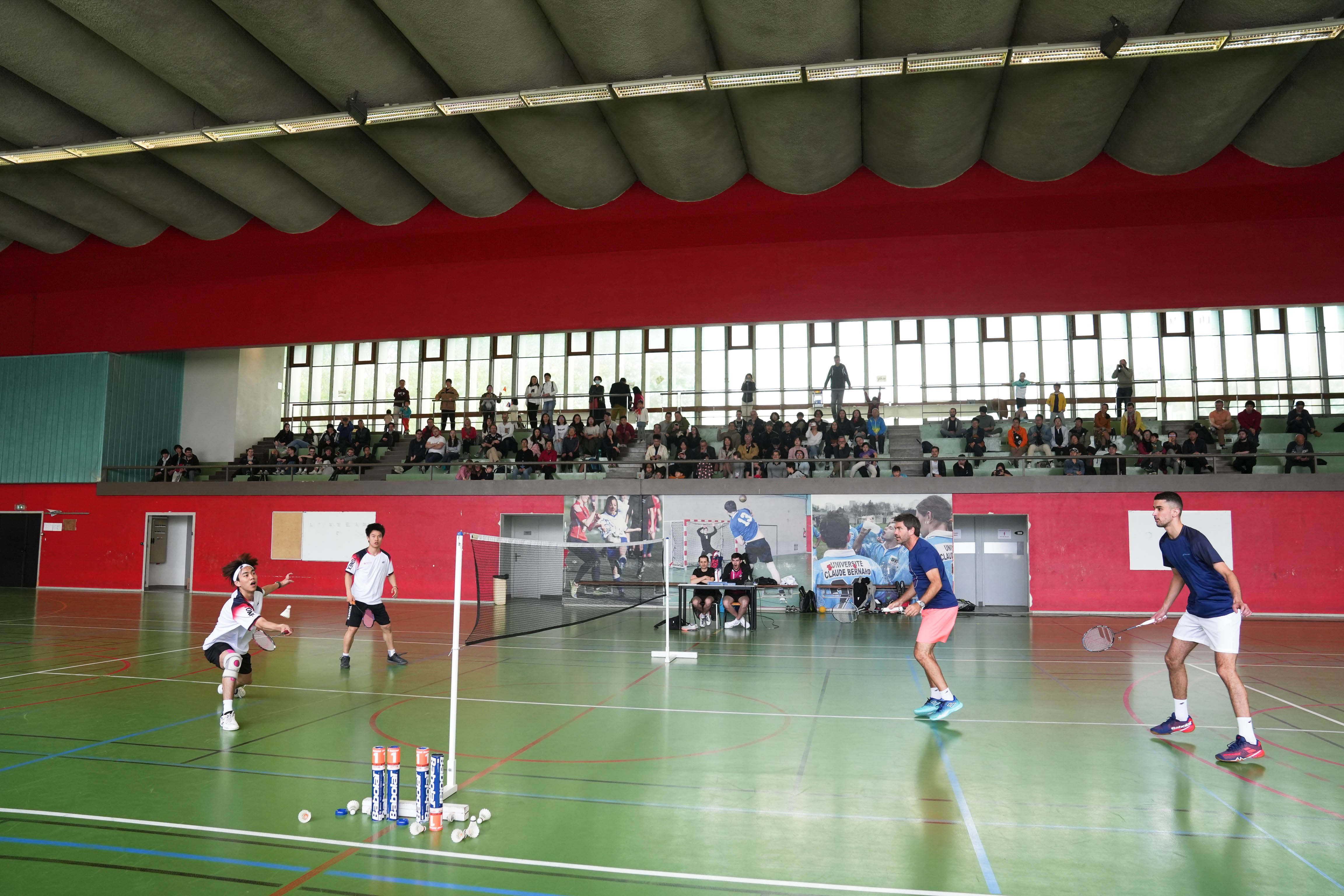 5月5日上午,2011年羽毛球世锦赛女单冠军、2012年伦敦奥运会羽毛球女单亚军、华东师大体育与健康学院王仪涵副教授,华东师大中法体育科学研究中心负责人高强教授,以及华东师大运动训练系本科生杨睿雯、黎敬谦和朱家辉,在与里昂一大、里昂应用科学技术学院的大学生运动员们举行的友谊赛不仅吸引了两所大学的师生,还吸引了当地乃至马赛地区的华侨们前来观赛。
