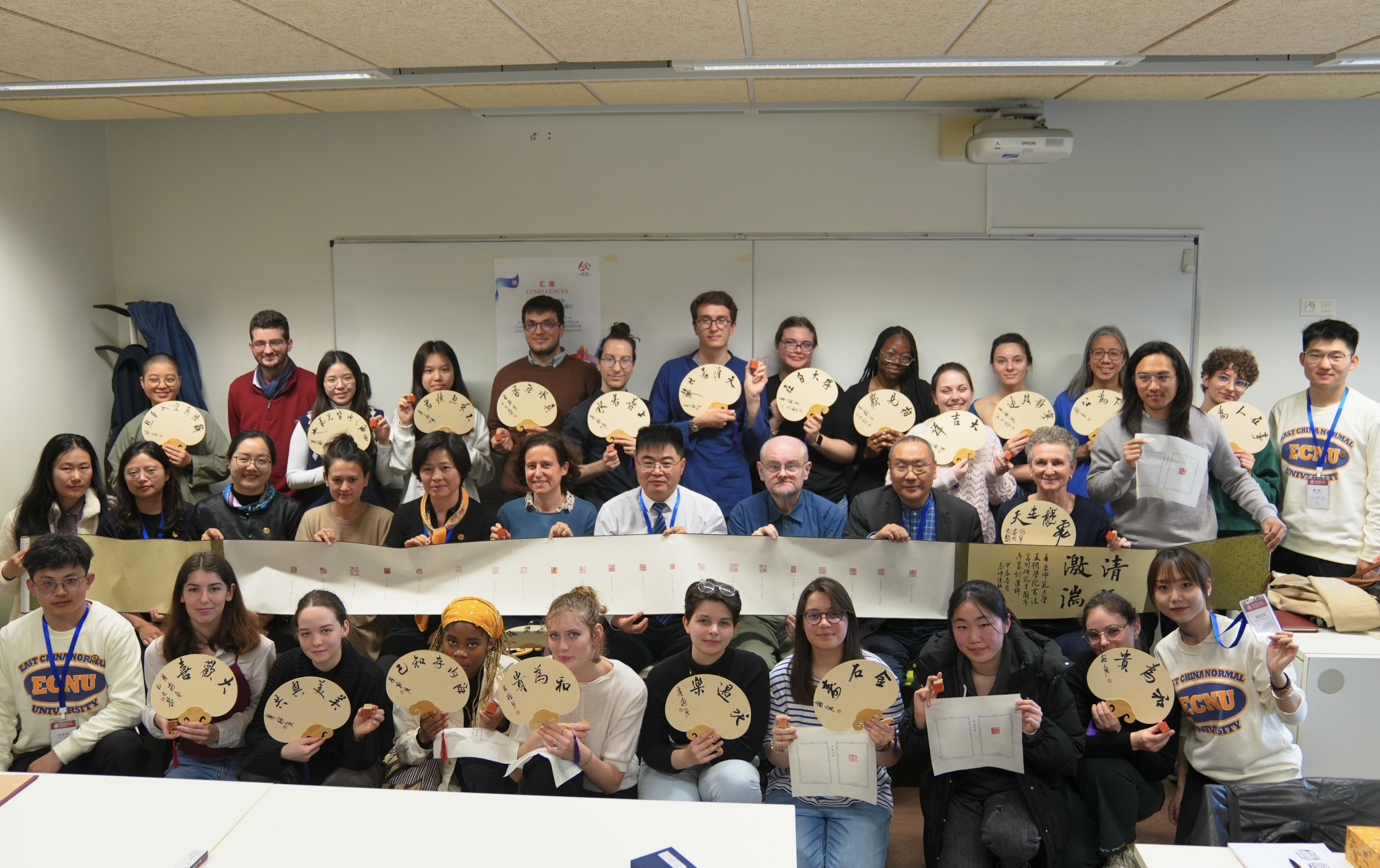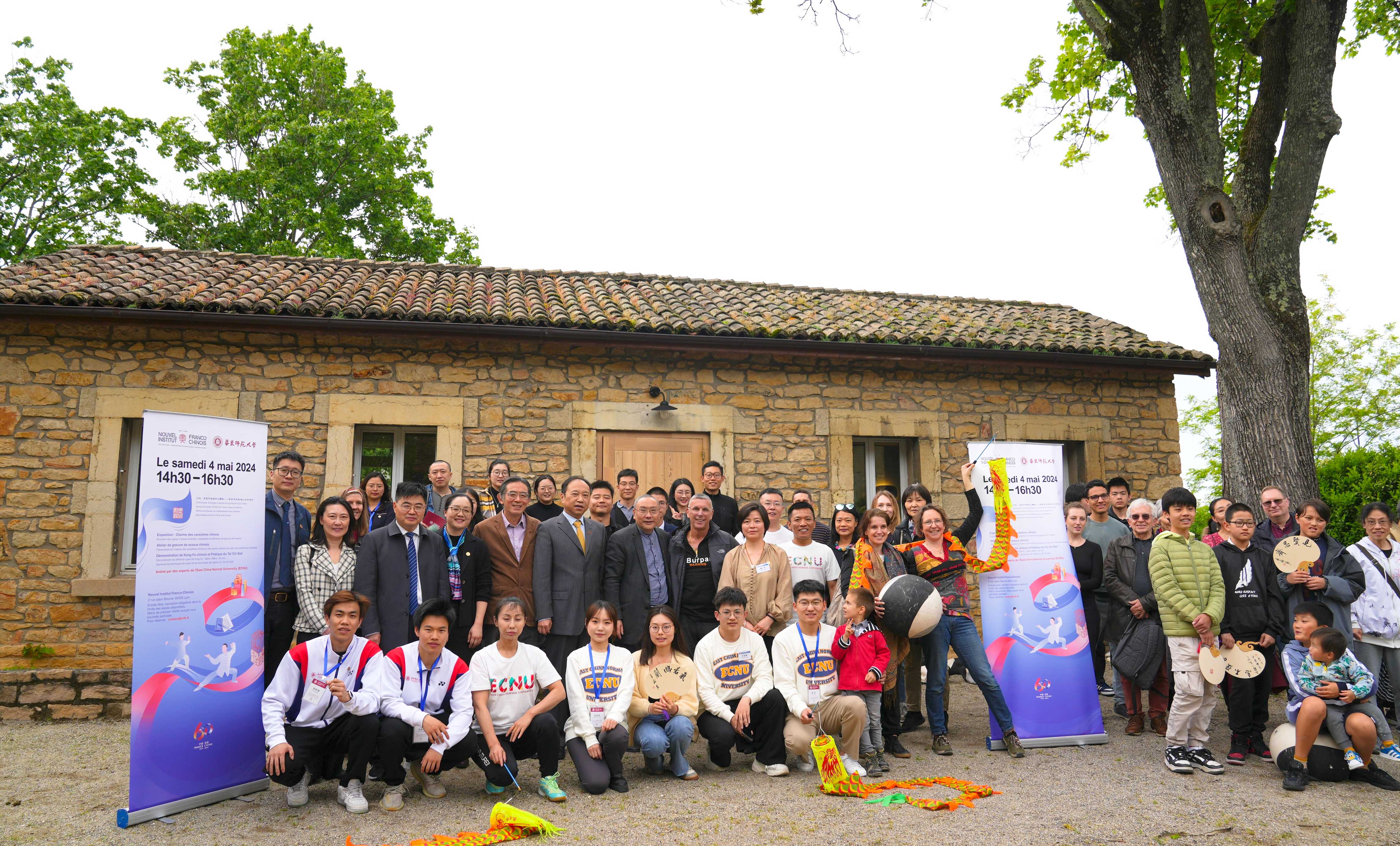 华东师大师生与参加“汇流”人文交流系列活动的部分法国大中小学生及市民在华东师大里昂办公室前合影