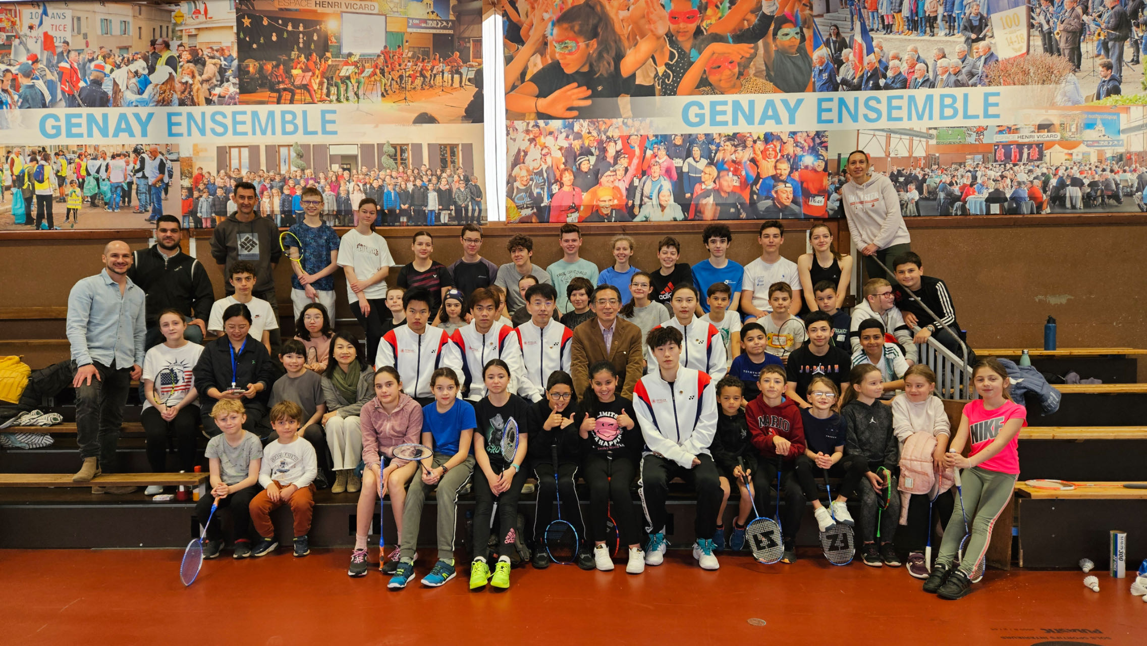 体育与健康学院羽毛球团队在里昂市郊Genay羽毛球俱乐部与当地社区民众进行交流后合影