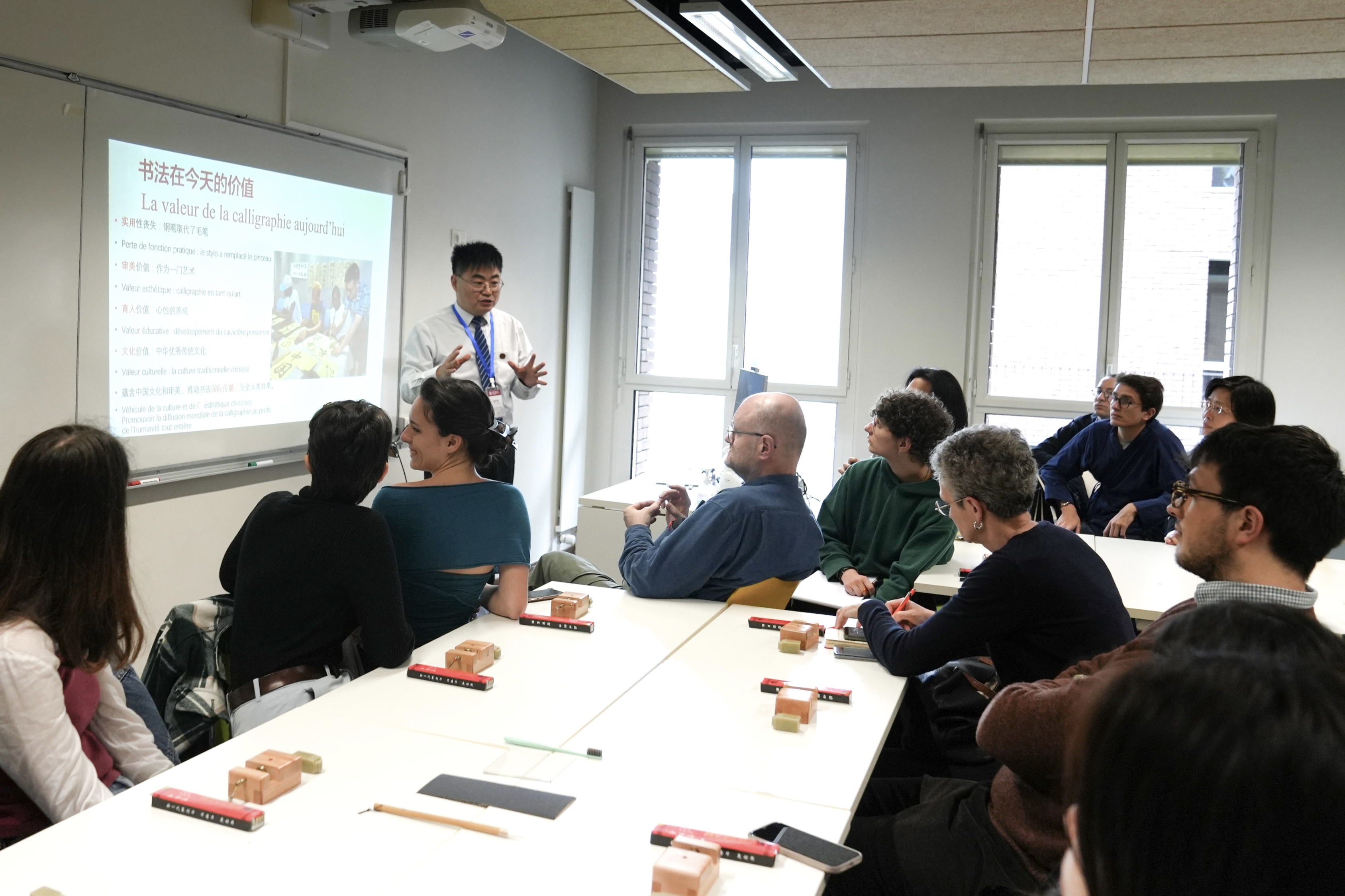 在巴黎东方语言文化学院举办“汉字走进法国校园——中国书法篆刻图文展”