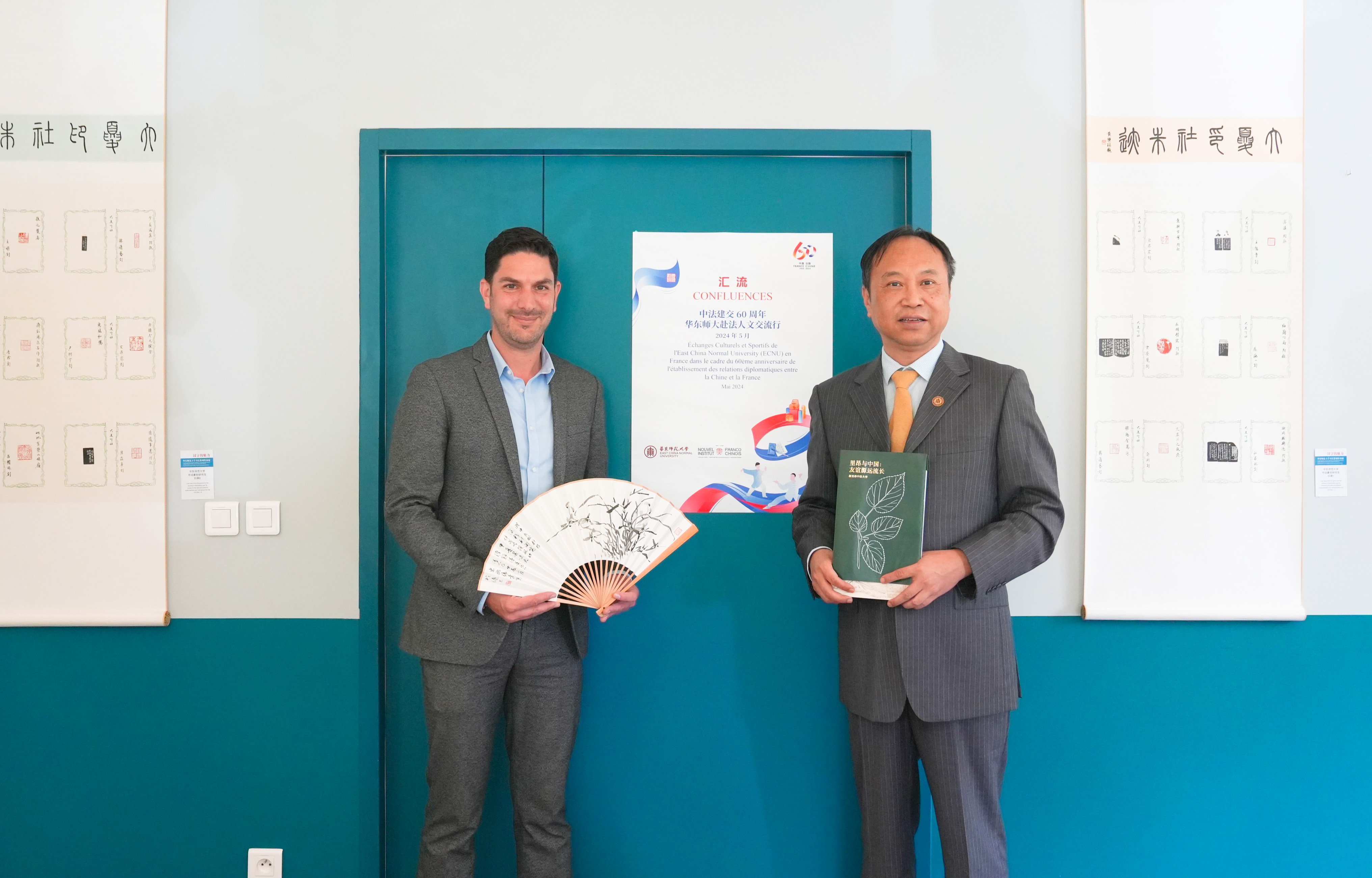 华东师大副校长戴立益与新里昂中法大学执行主任Guillaume ARNOULD互赠校礼