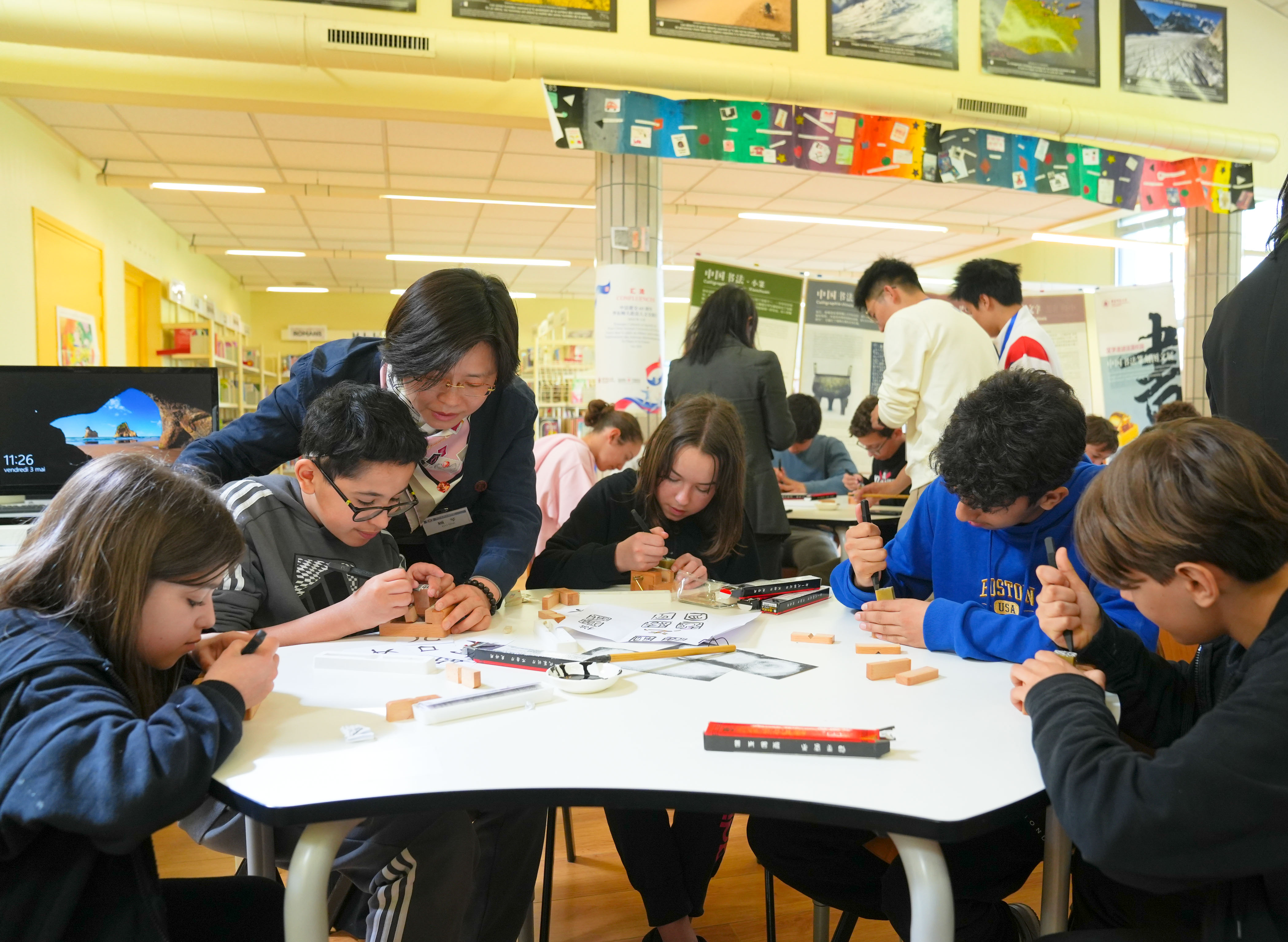 在路易·莱普林斯-林盖中学举办“汉字走进法国校园”体验与展出活动