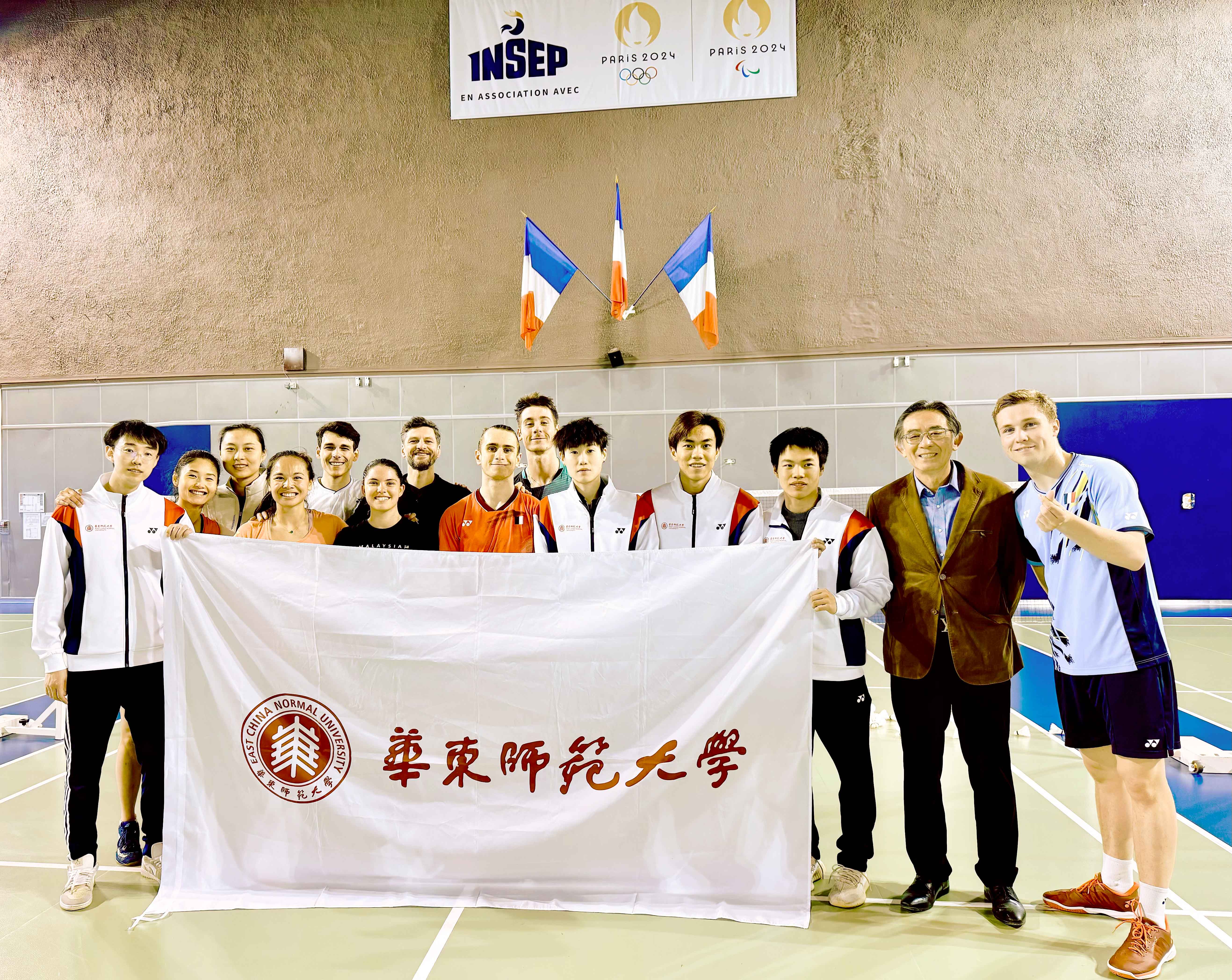 这是华东师大体育与健康学院院长季浏教授带队的羽毛球世界冠军团队“与世界冠军面对面——中法高校羽毛球友谊赛”活动的第七场。此前,他们在巴黎、里昂等地与法国国家体育中心(INSEP),巴黎-西岱大学以及里昂部分大中小学开展了相关活动。