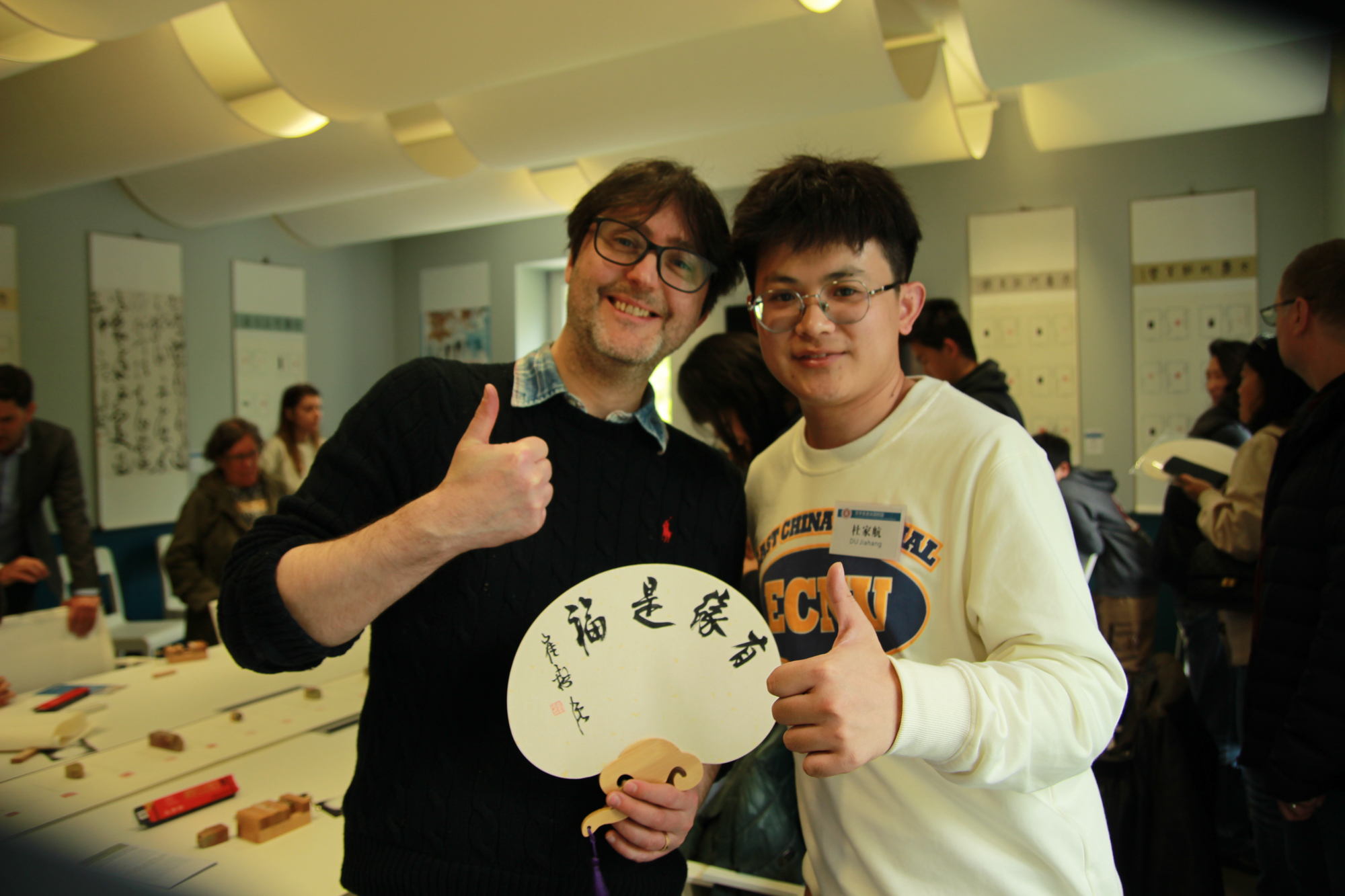 5月3日在路易·莱普林斯—林盖中学,那里的同学们虽然年纪尚轻,但他们对中华文化的热情却无比高涨,让我深受感动,同学们纷纷选择了富有中国传统文化内涵的汉字,如“家”“中”“国”“爱”等,这些汉字不仅体现了他们对中国的热爱,也象征了中法两国之间的深厚友谊。