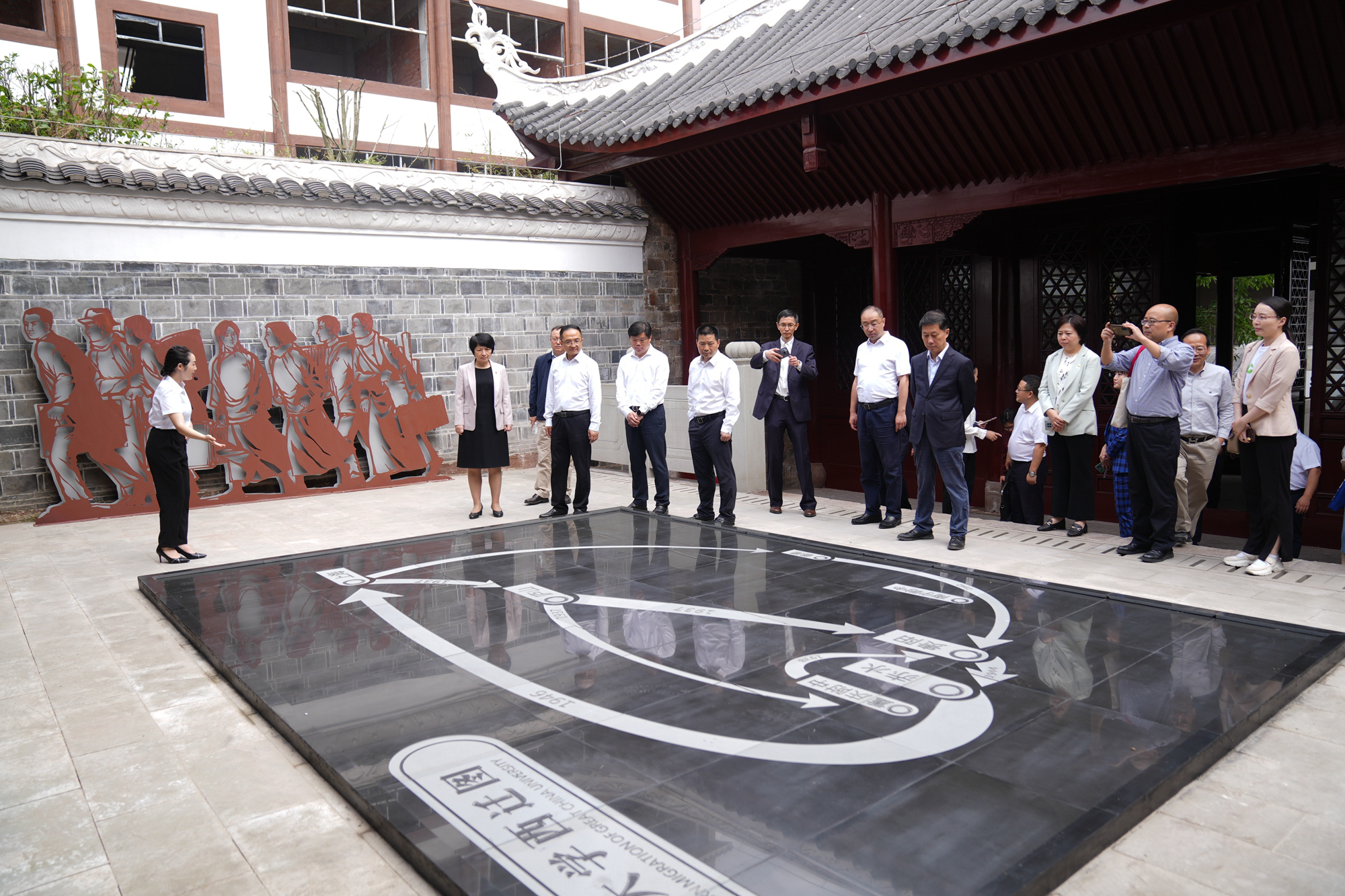 庭院中间地面铺设有大夏大学西迁图,两边是人物铁艺造型,生动展现了大夏大学1937年西迁至贵阳以及1944年底再次迁设赤水的足迹,让参观者仿佛一下子回到了那战火纷飞、激情飞扬的艰苦岁月。