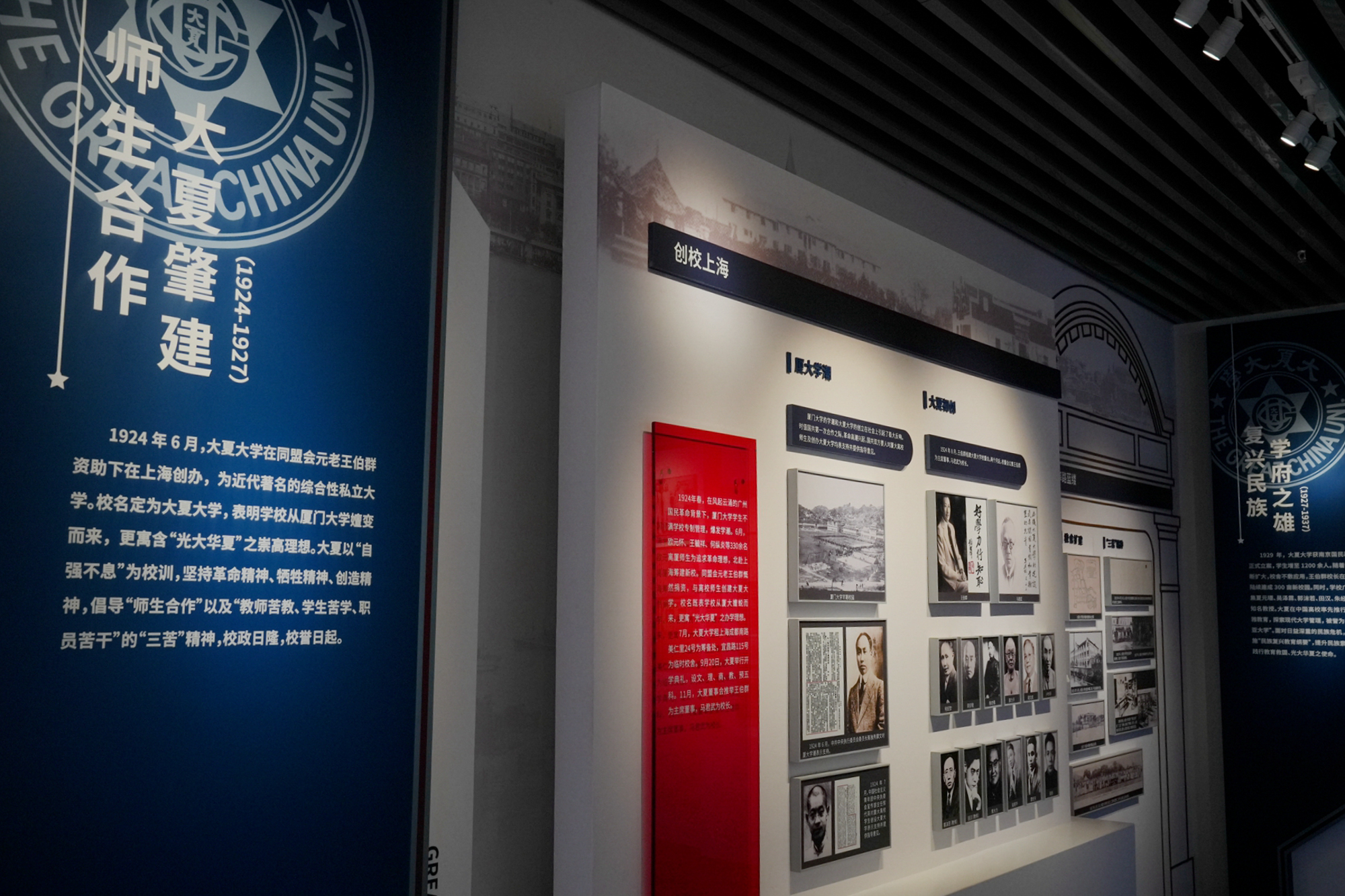 大夏大学历史陈列馆总面积约550平方米,分为历史图文展厅和文昌宫场景复原两大部分。陈列馆集历史性、文化性、知识性和教育性为一体,充分吸收了上海和赤水两地的地域及人文特色,结合大夏大学的办学史,以时间为轴,见人、见物、见精神,通过图文展示、实物呈现以及多媒体视频等多种手段,全方位展示大夏大学27年的办学历程。同时,陈列馆展示华东师大在继承大夏大学丰厚历史的基础上,以全新面貌为党育人、为国育才,为中华民族的伟大复兴贡献力量的精彩篇章。