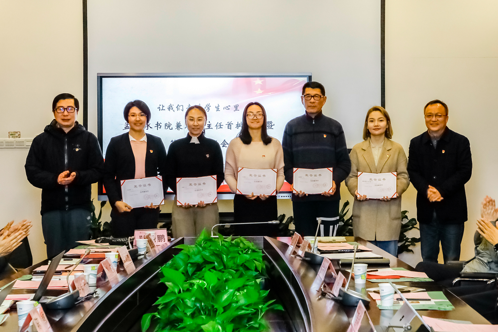 教师工作部部长、人事处处长施国跃为第二批兼职班主任颁发聘书