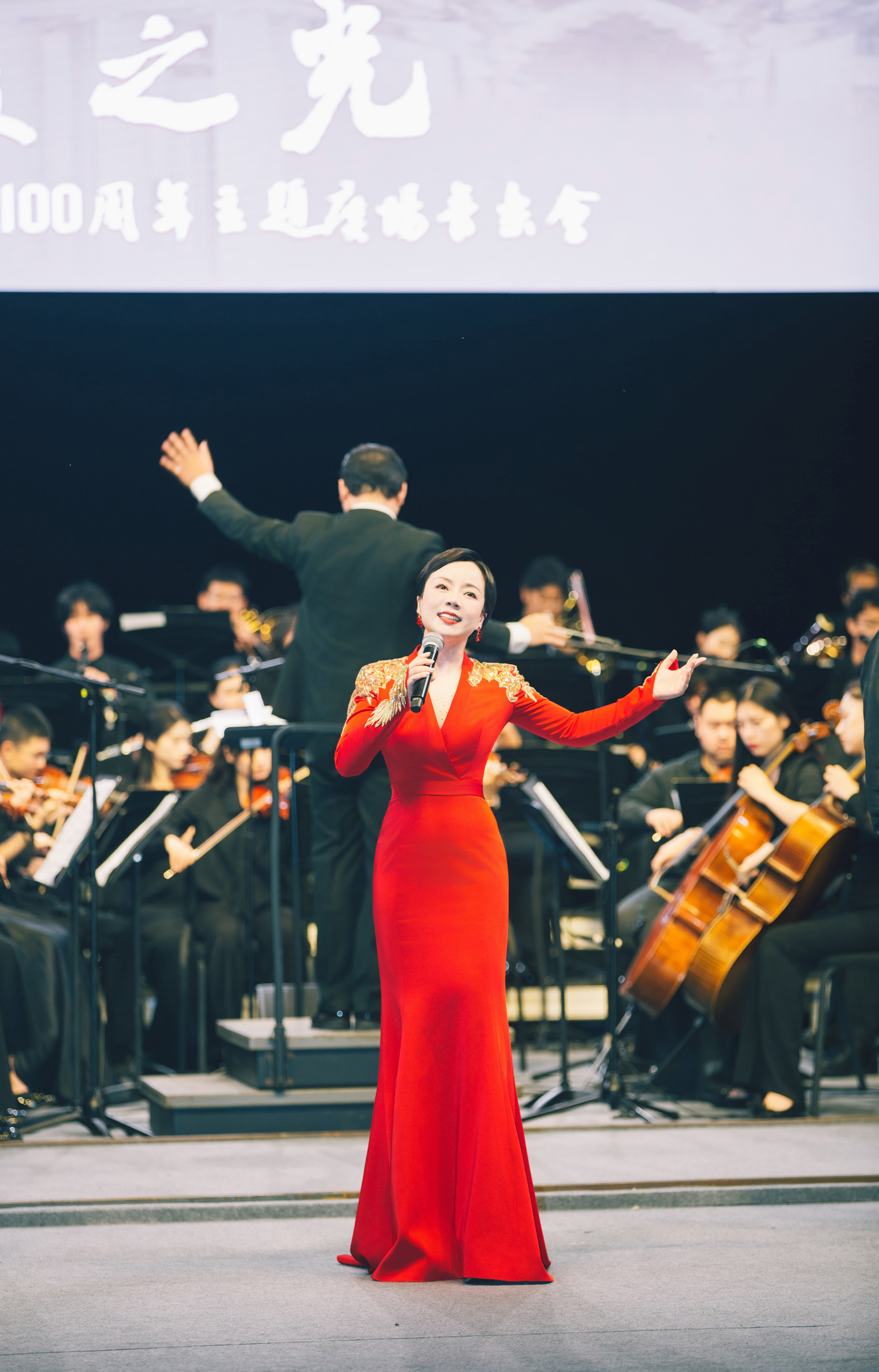 交响乐团在指挥张栩嘉的带领下,演奏电影《建国大业》主题交响曲《追寻》