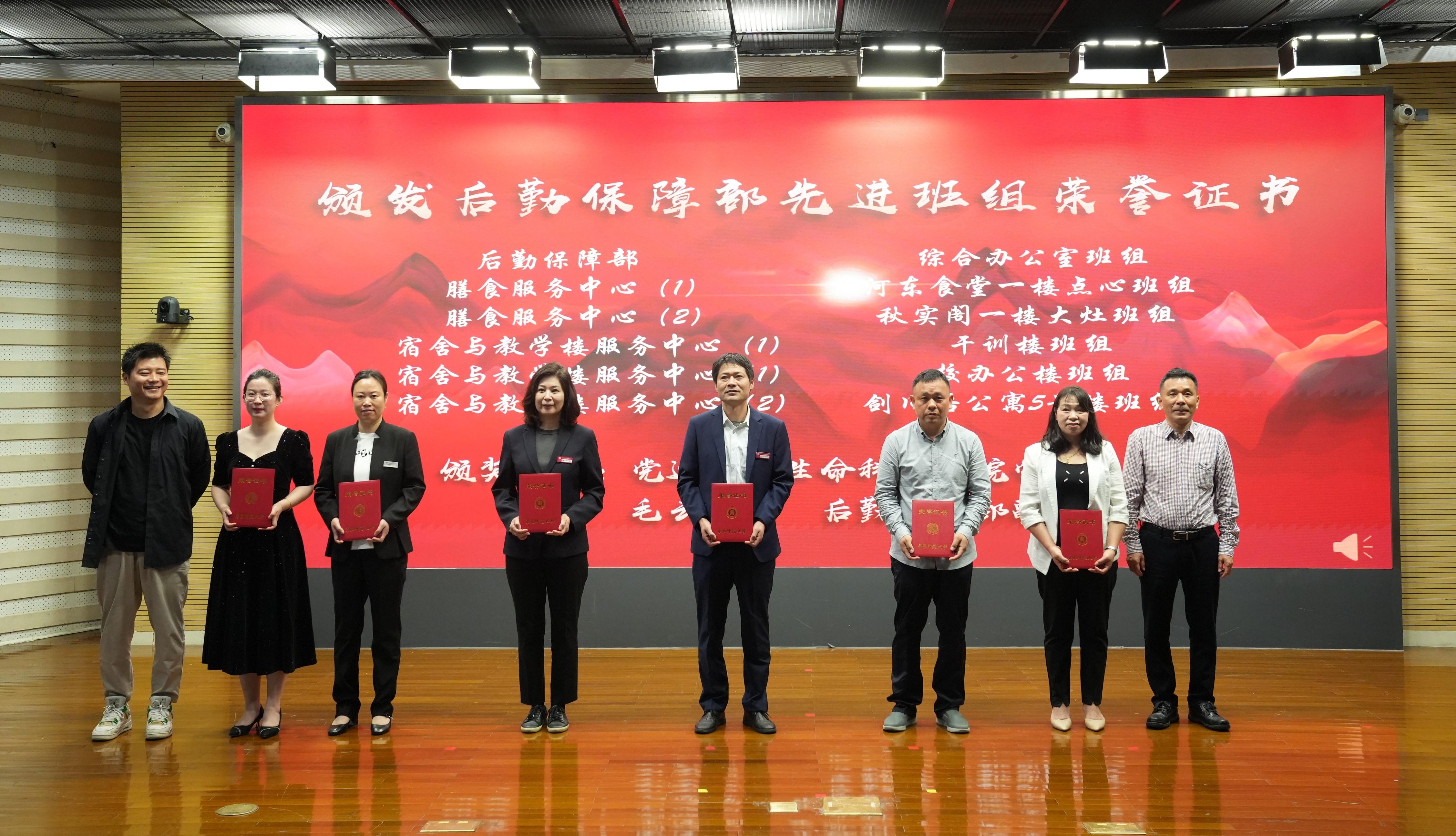本次表彰大会共颁发了包括44名先进个人、10名后勤青年优秀文明岗、12个先进班组、2个先进集体以及6个服务质量考核优秀奖在内的多个奖项。职能部门和院系负责人代表、后勤保障部党政班子成员共同为先进个人和集体颁发荣誉证书。