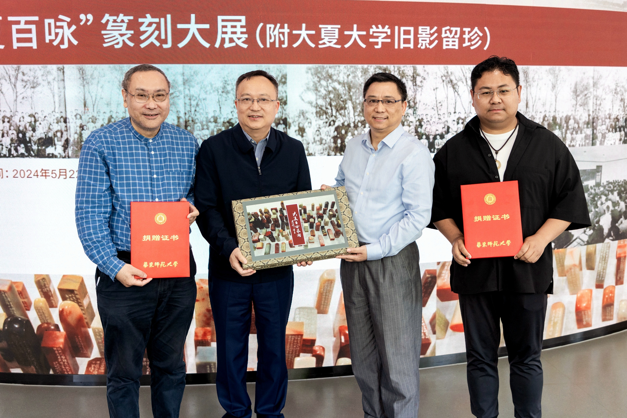 捐赠“大夏百咏”篆刻作品并颁发捐赠证书