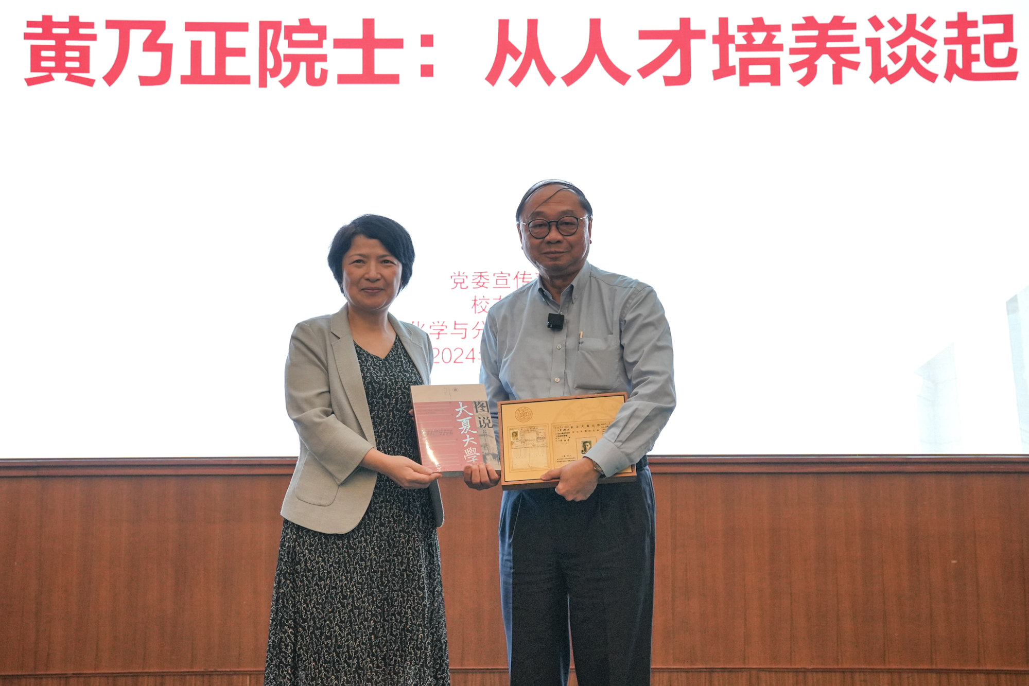为了纪念这段特殊的缘分,华东师大党委宣传部与档案馆特意找到黄乃正院士父母当前就读大夏大学时的老照片和成绩单,并制作成纪念品。在讲座现场,华东师大党委书记梅兵把这份特殊的礼物和学校档案馆最近主编出版的《图说大夏大学》赠送给黄乃正院士。