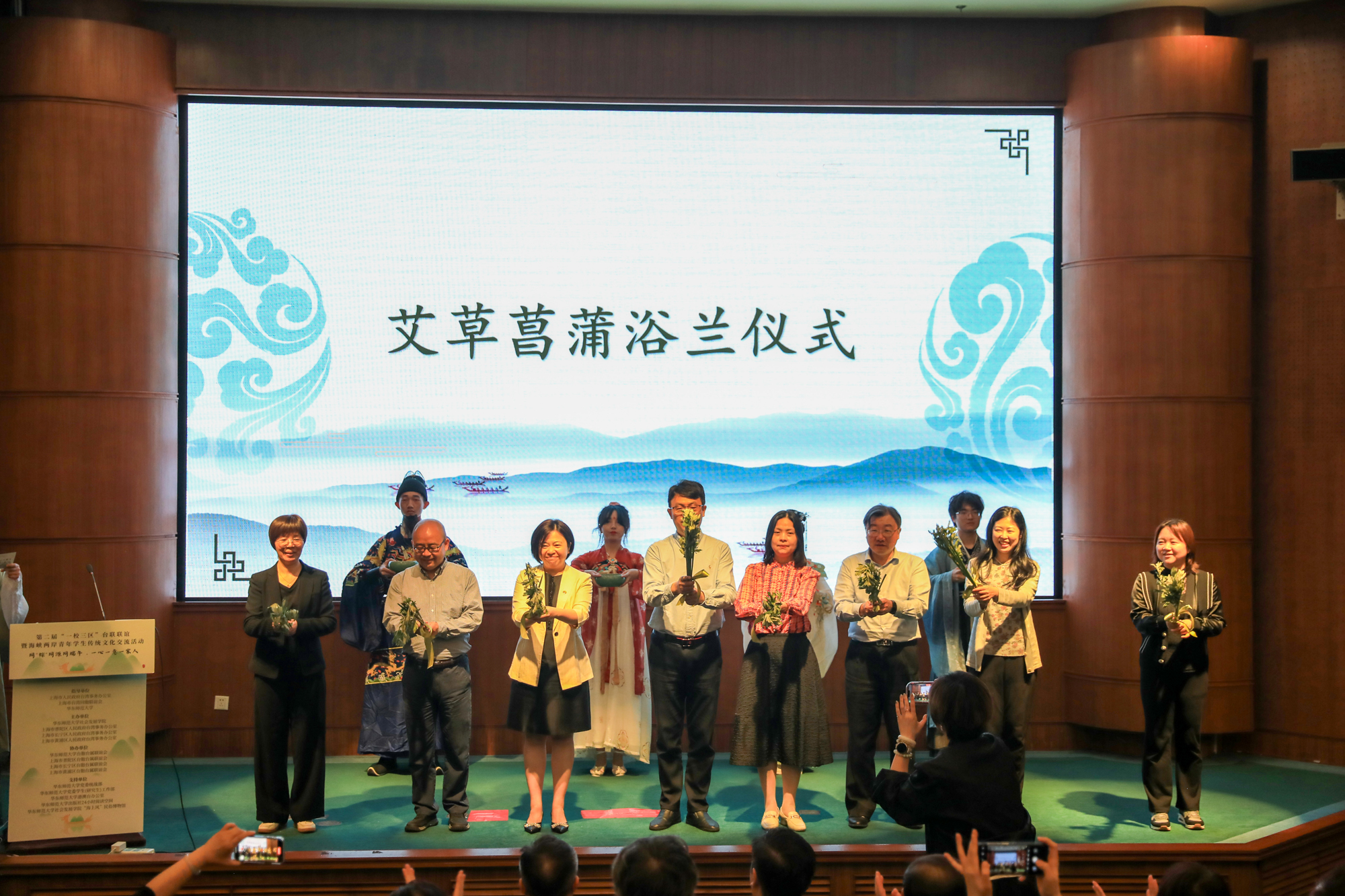 嘉宾们与海峡两岸学生代表一起参与艾草菖蒲浴兰仪式