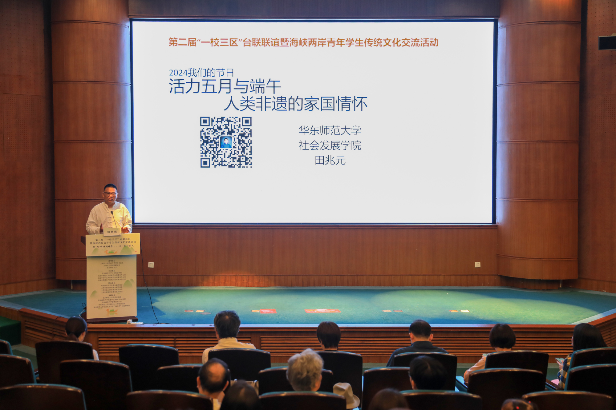 华东师大社会发展学院民俗学研究所田兆元教授以“活力五月与端午,人类非遗的家国情怀”为题作了一场内涵丰富的端午文化讲座,从端午节的起源和传承阐述中华民族精神的节庆表达形式,剖析端午所蕴含的传统文化内涵和家国天下情怀。
