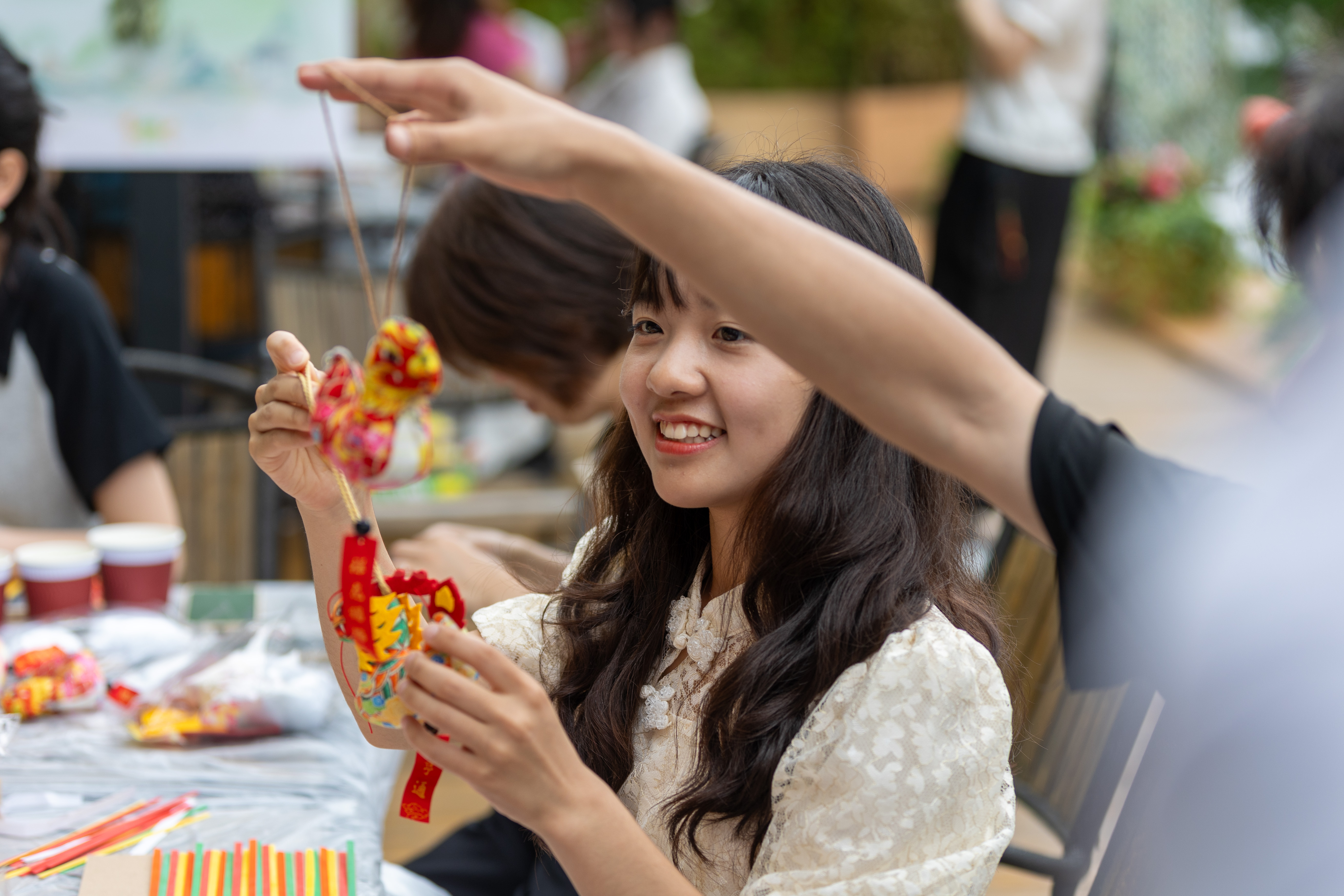 在包粽子环节,两岸长幼青少年互相结对,体验传统技艺,交流思想感情。下午的游园会更是将端午节传统文化体验推向高潮。立蛋、投彩粽、投五毒、划旱龙舟、做香囊、折纸龙舟、作竹编画、品端午茶等多种中华传统文化体验活动吸引了众多参与者,让两岸青年学生和台胞台属在动手制作及友谊赛中感受端午节的独特魅力。