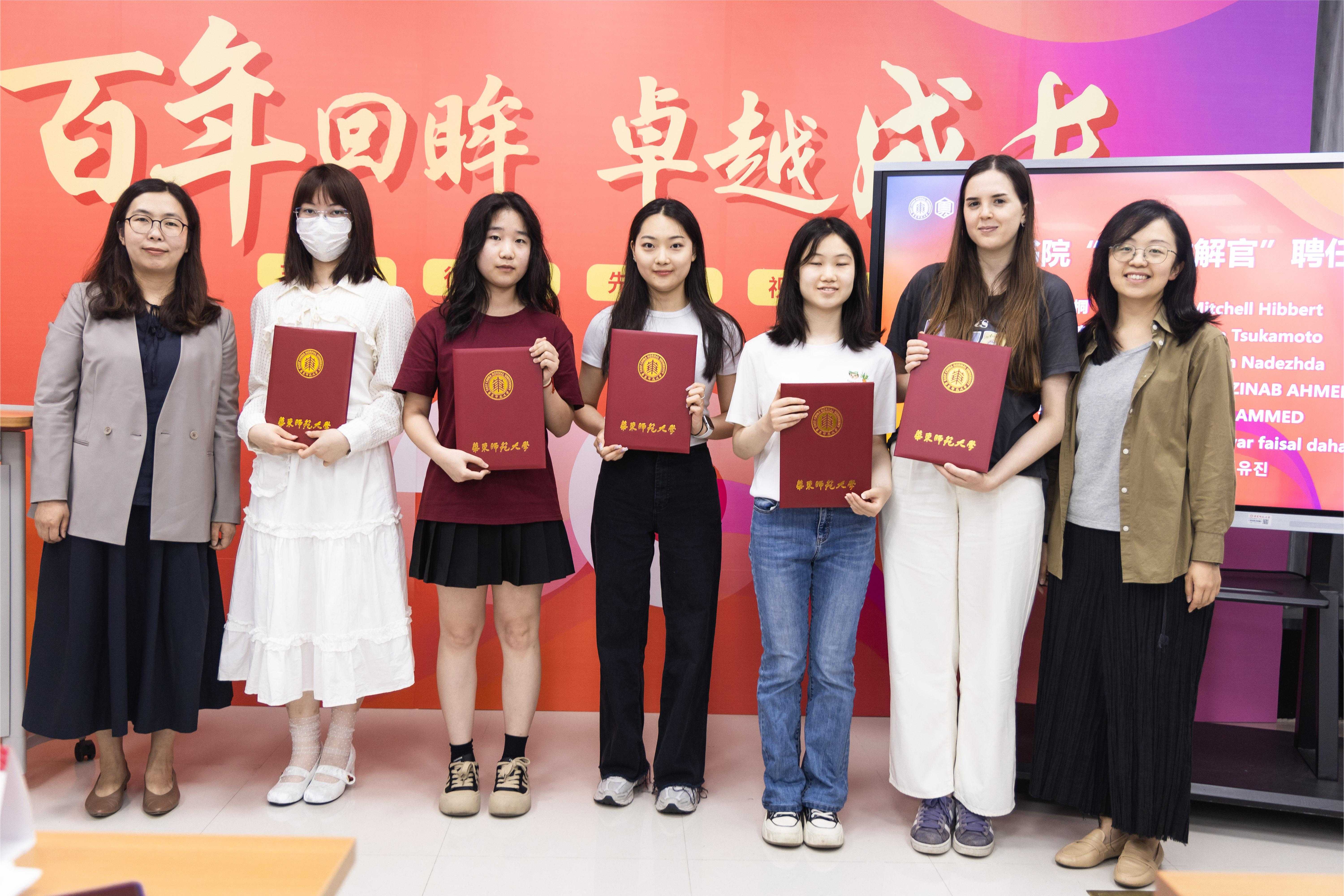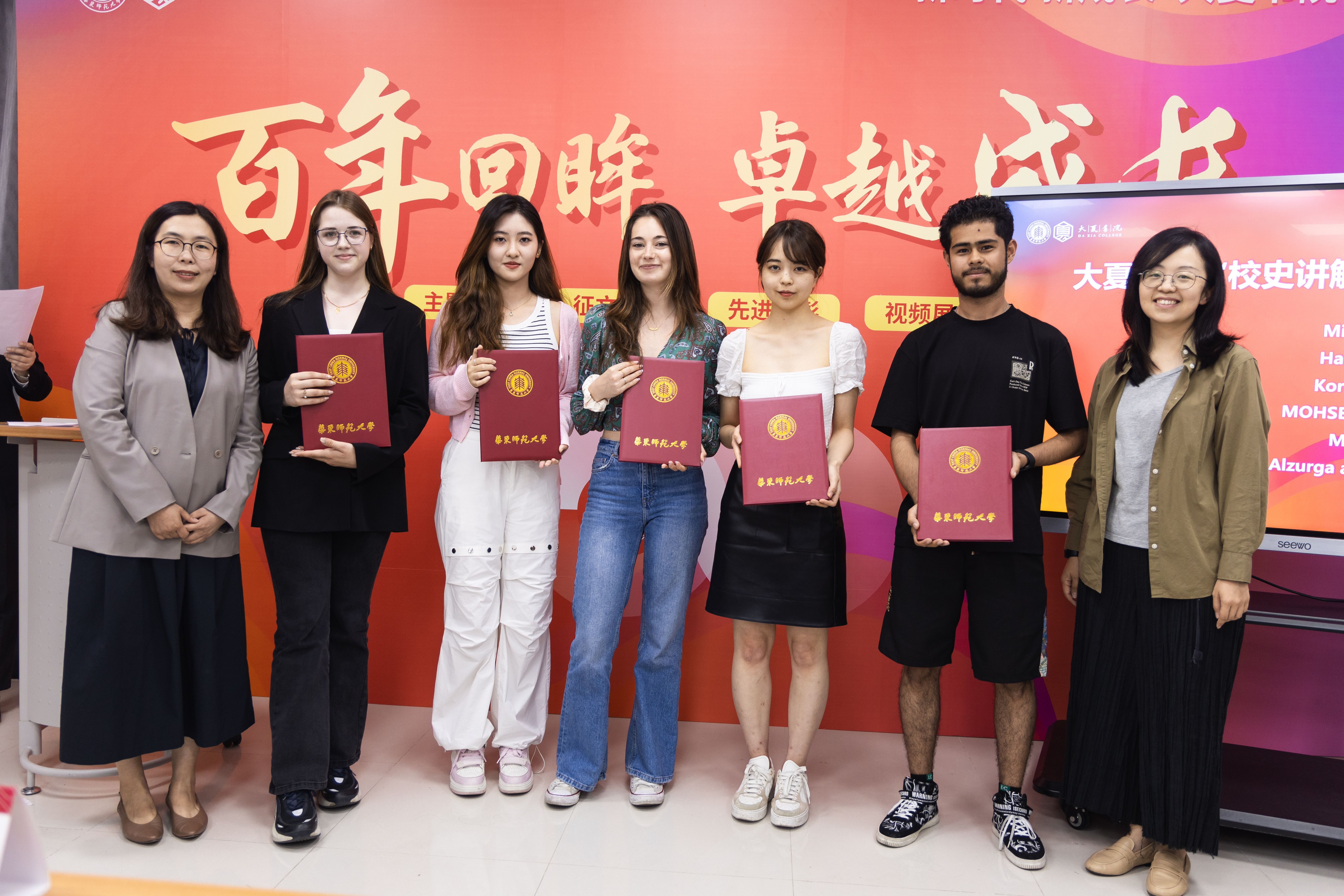 为了解师大文脉,在共同的精神场域中传承百年大夏精神,大夏书院组织15名学生化身“学生校史讲解官”,探寻大夏大学时期的建筑景观,录制中、英、法、日、韩、俄、阿拉伯语等7种语言共16个多语种短视频,以出镜讲述的方式回忆了这段跨越时空、熠熠生辉的办学历史,将“静的风景”转化为“活的课程”。档案馆馆长助理、校史党史办公室副主任林雨平和党委宣传部吴潇岚共同发布视频并为首批大夏书院“学生校史讲解官”颁发证书。
