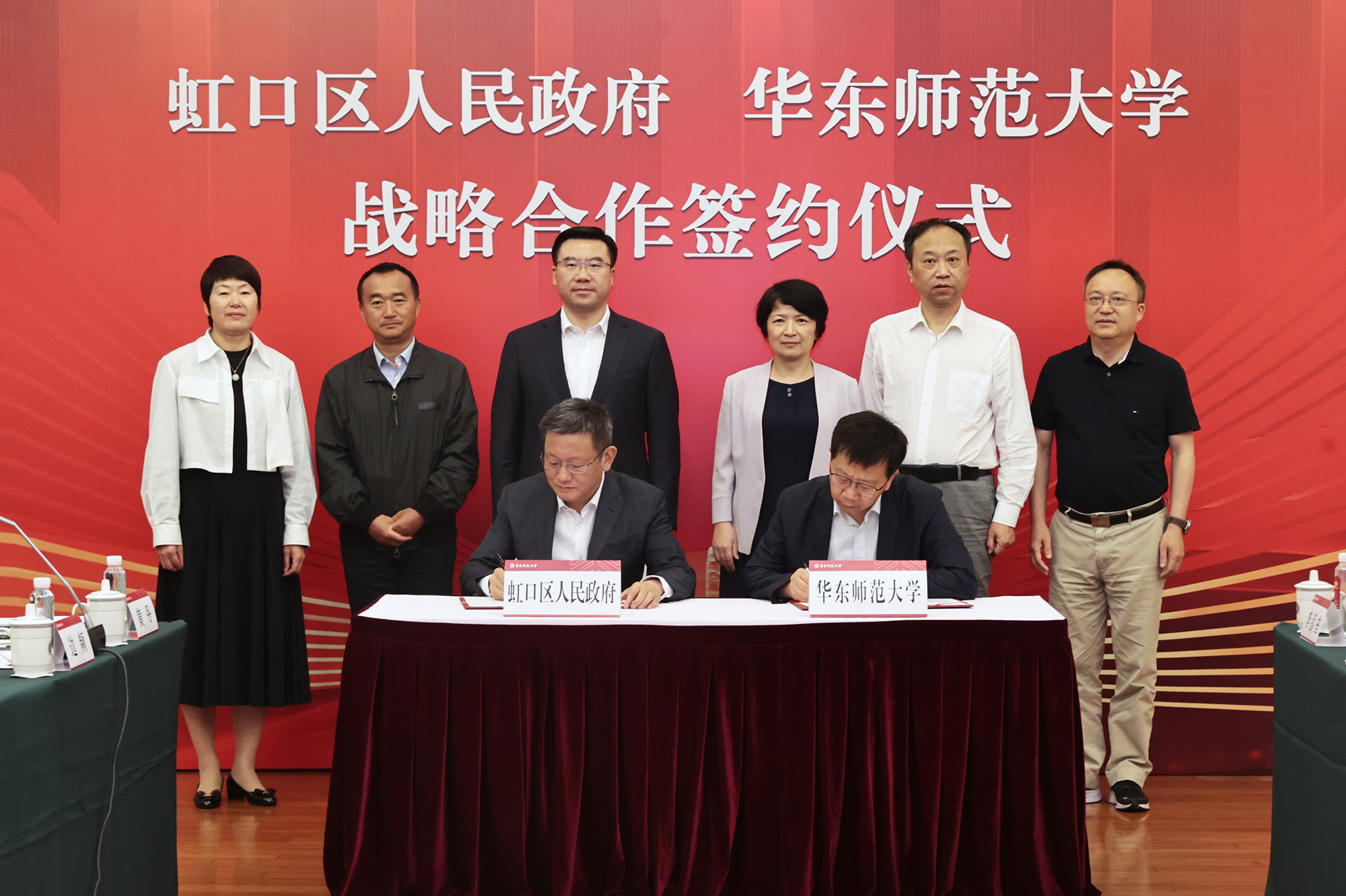 虹口区区长吕鸣和华东师大校长钱旭红代表双方签署战略合作协议。