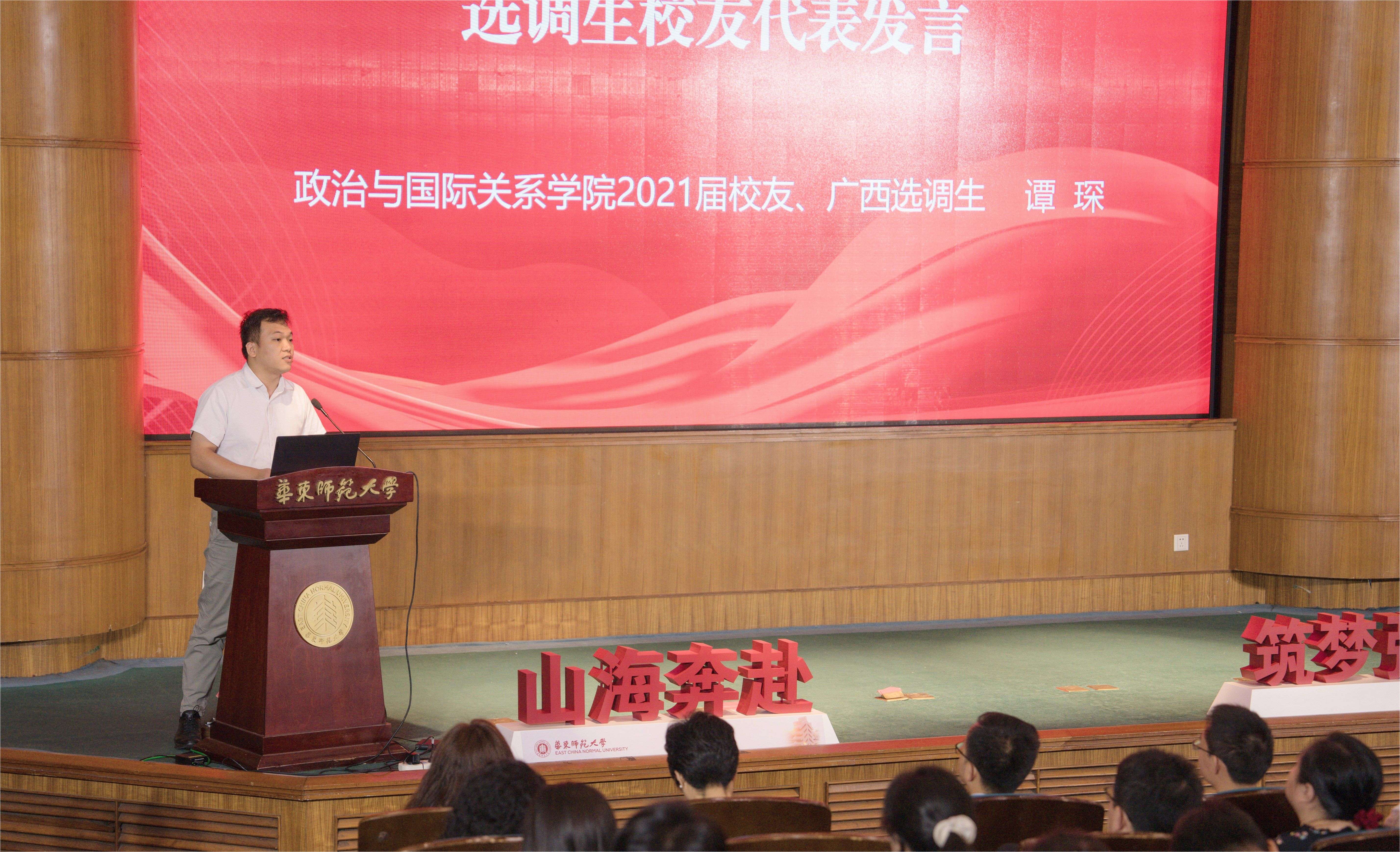 政治与国际关系学院2021届校友、广西壮族自治区凭祥市政府办副主任谭琛发言