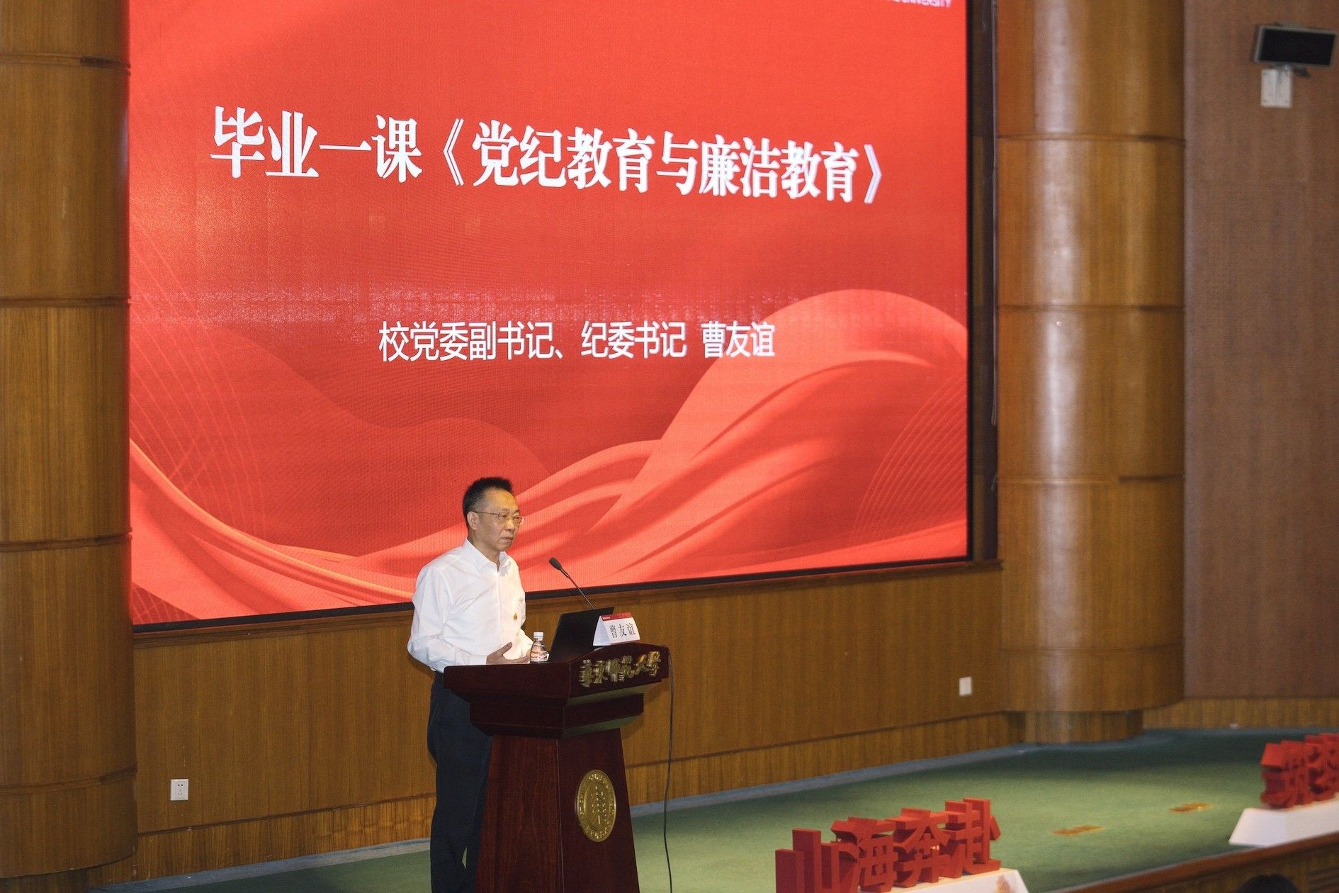 校党委副书记、纪委书记曹友谊为毕业生党员讲授党课