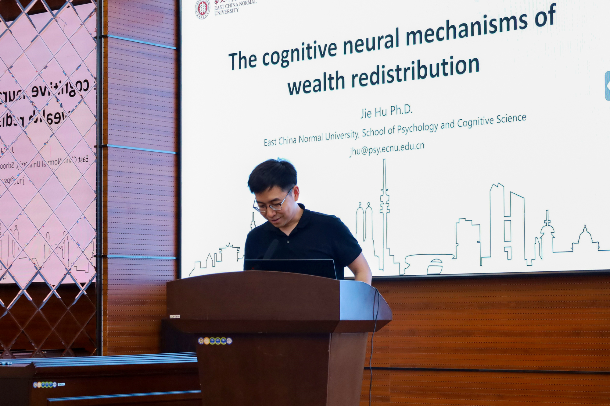 华东师大心理与认知科学学院胡捷研究员作题为《财富再分配的认知神经机制》的专题报告。结合认知计算建模方法和神经成像技术,胡捷研究员通过两项实证研究,从个体层面揭示了财富再分配行为背后的不同动机及其相应的神经基础,并探讨了不同财富来源对财富再分配行为的影响。