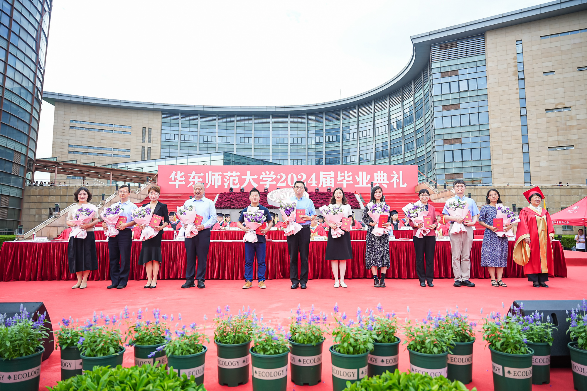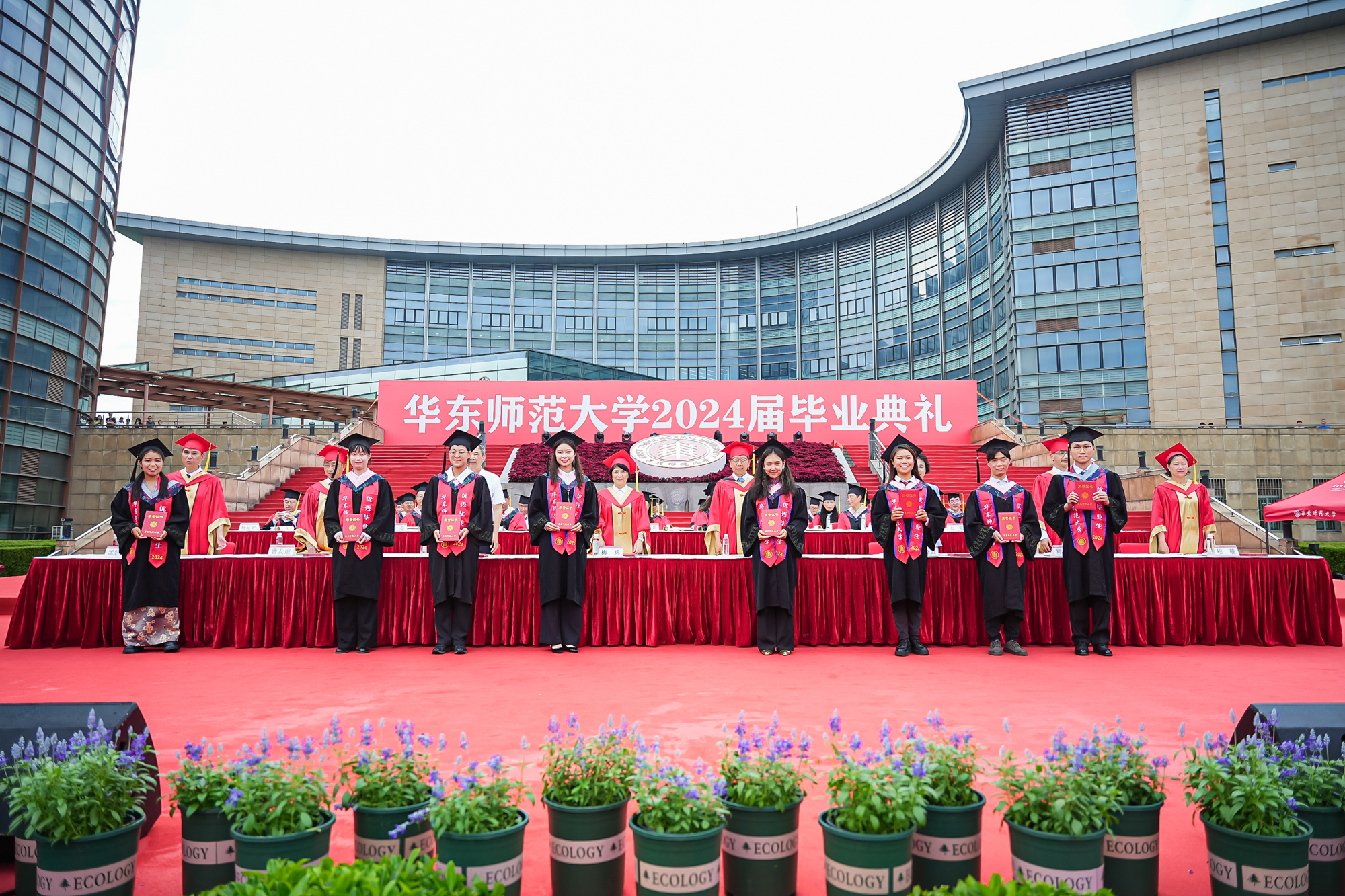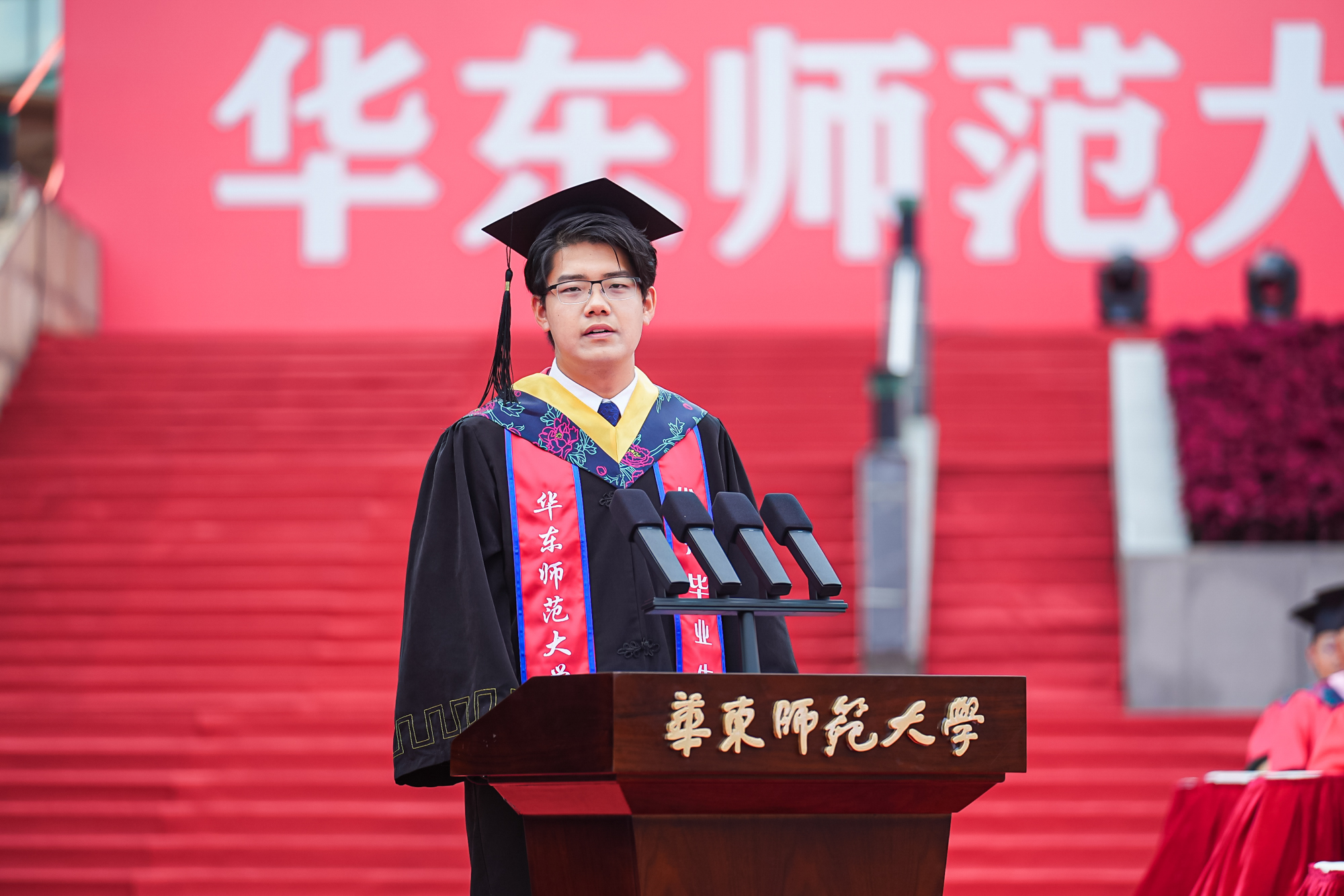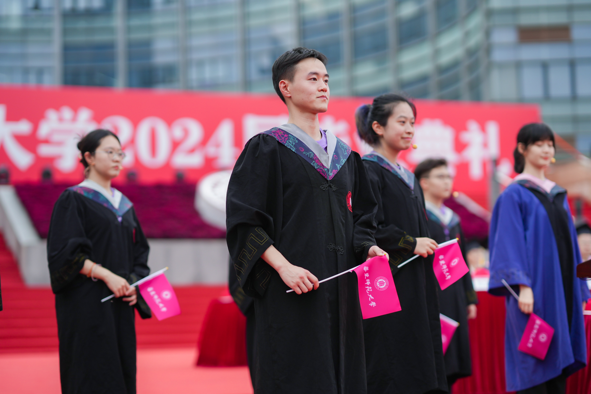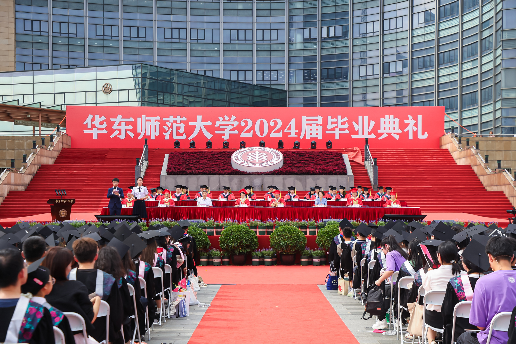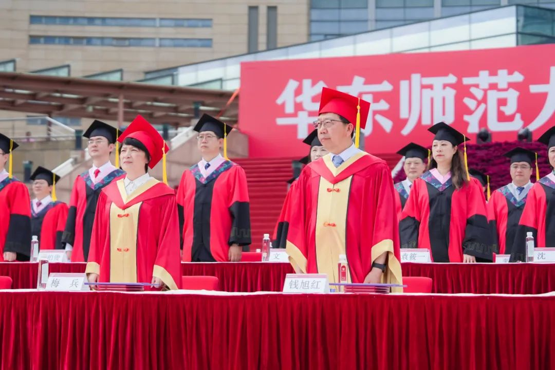 校领导梅兵、钱旭红、曹友谊、顾红亮、孟钟捷、程静,校学术委员会和各专门委员会负责人,学部、院系、书院负责人,机关职能部门和直属单位负责人,校友代表,教师代表,员工代表,毕业生亲友等出席典礼,一起见证师大学子完成学业开启人生新征程的重要时刻。