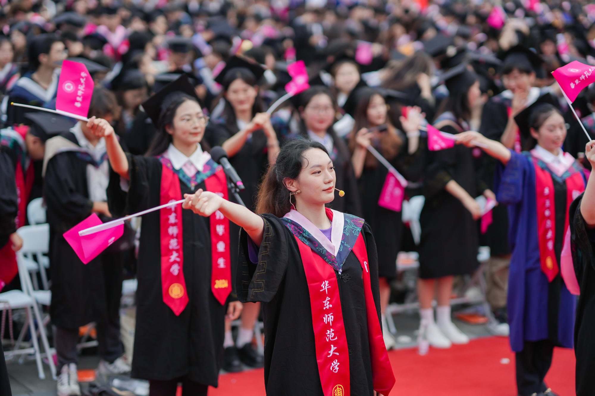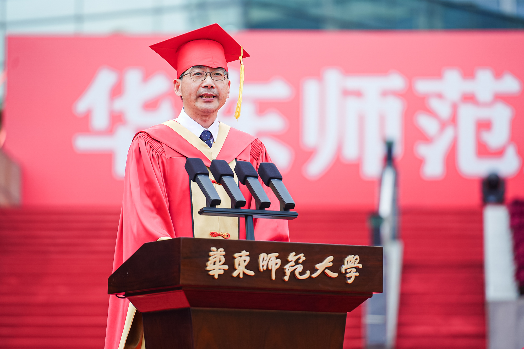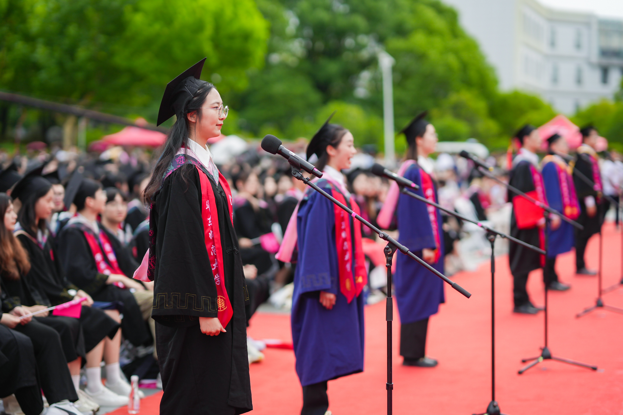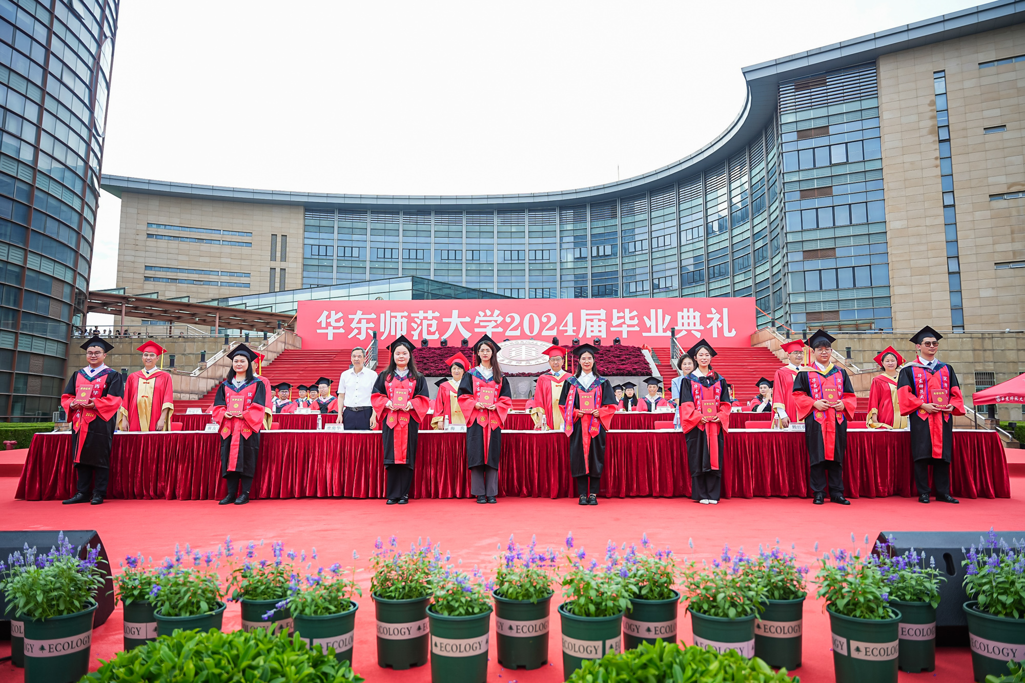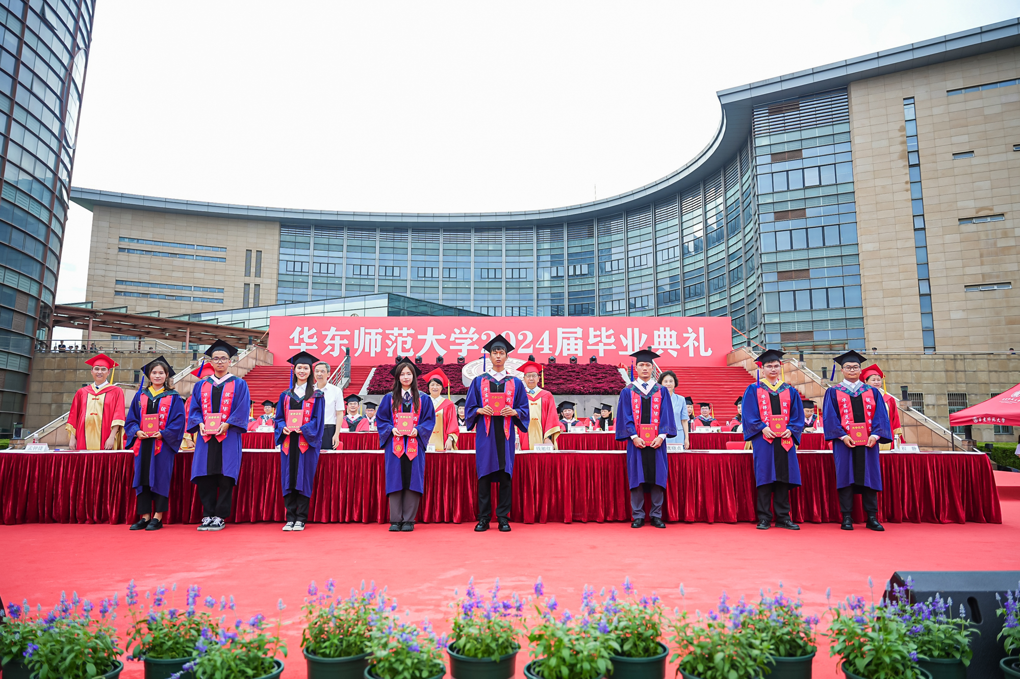 校领导梅兵、钱旭红、曹友谊、顾红亮、孟钟捷、程静,校学术委员会和各专门委员会负责人,学部、院系、书院负责人,机关职能部门和直属单位负责人,校友代表,教师代表,员工代表,毕业生亲友等出席典礼,一起见证师大学子完成学业开启人生新征程的重要时刻。