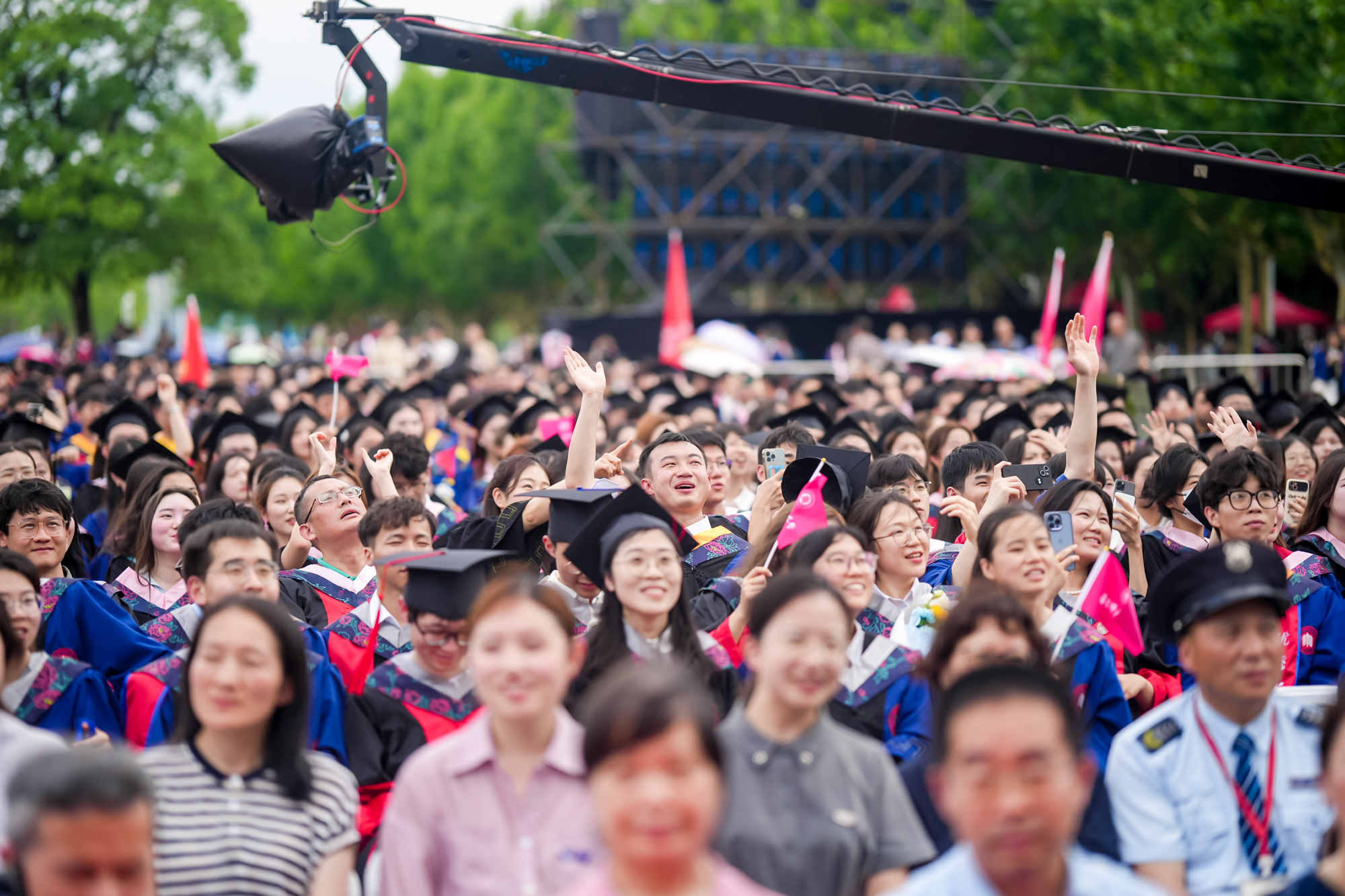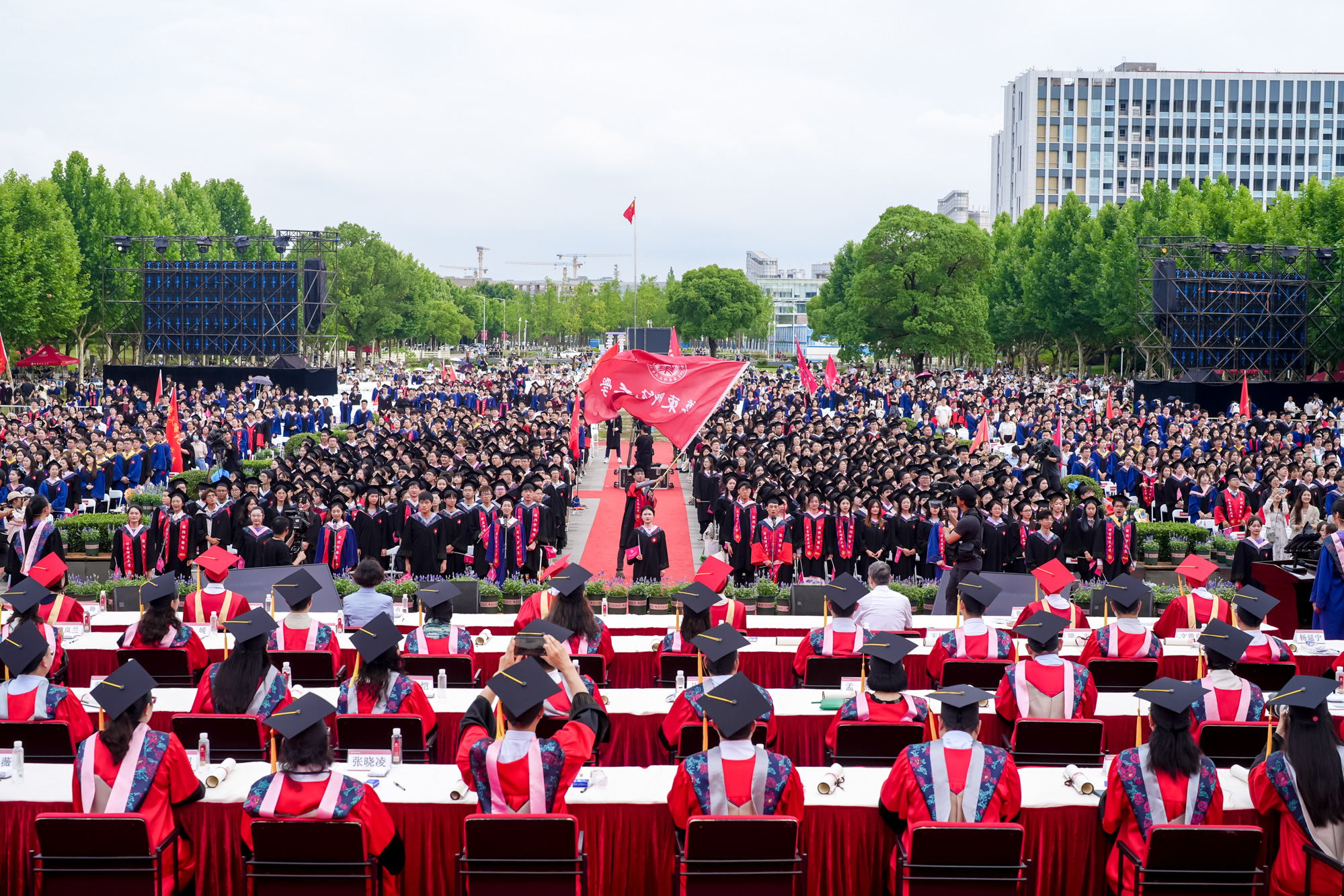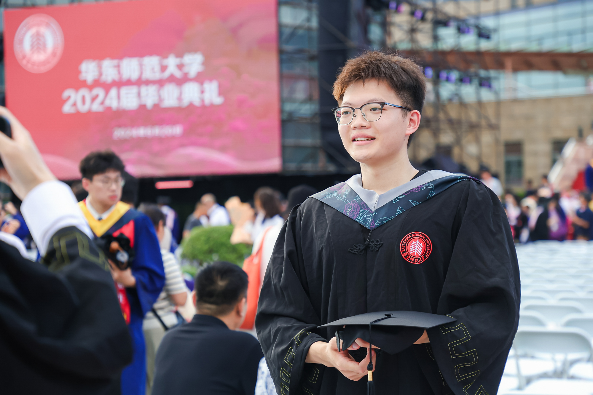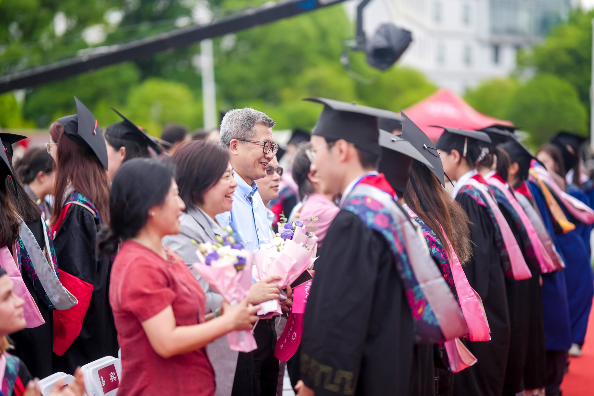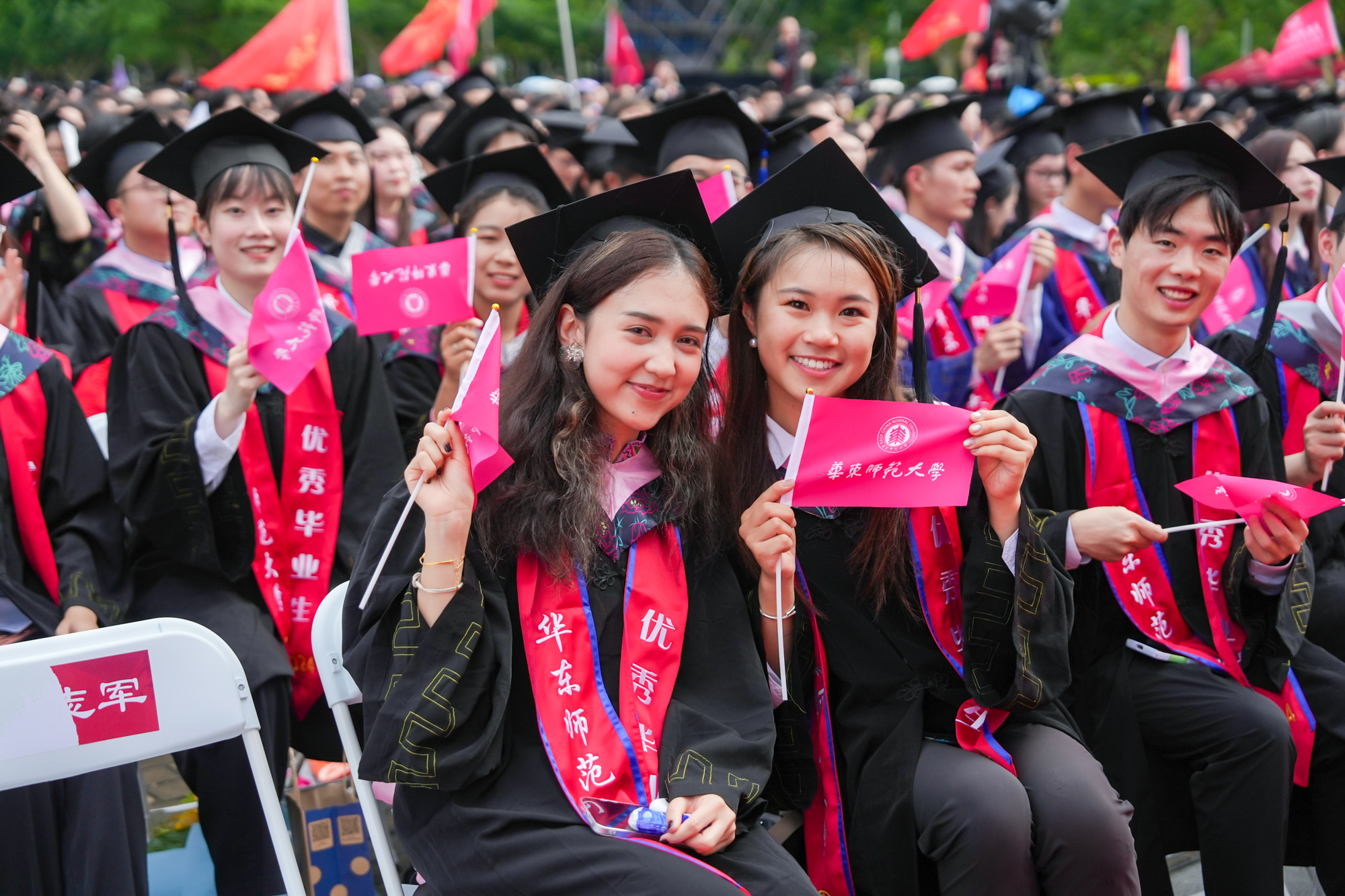 校领导梅兵、钱旭红、曹友谊、顾红亮、孟钟捷、程静,校学术委员会和各专门委员会负责人,学部、院系、书院负责人,机关职能部门和直属单位负责人,校友代表,教师代表,员工代表,毕业生亲友等出席典礼,一起见证师大学子完成学业开启人生新征程的重要时刻。