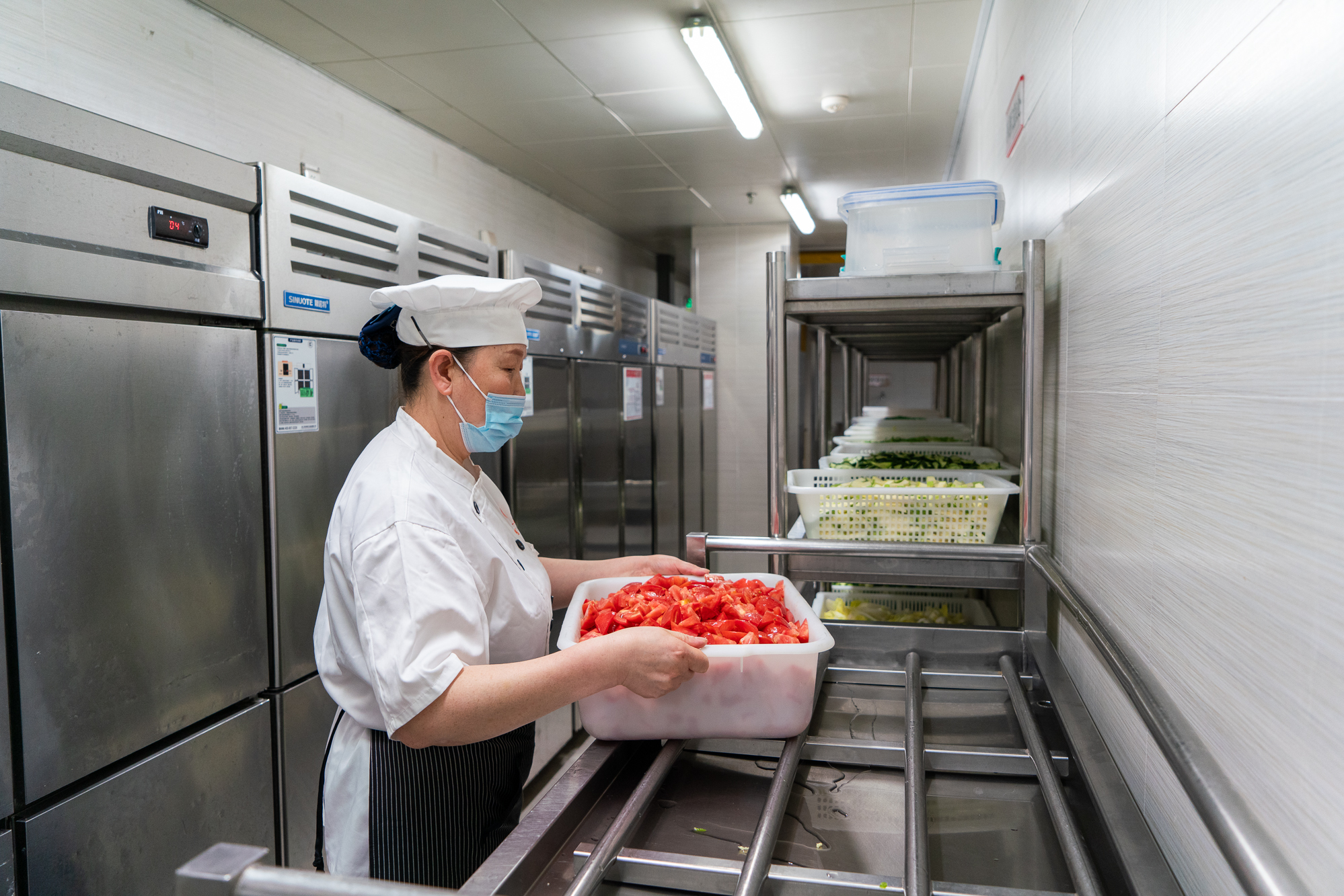作为普陀校区河东食堂一楼的切配班班长,吉洪湖带领团队严格把好食材质量卫生关,确保师生舌尖上的安全,并以热情周到、细致入微的服务,让师生们在安全用餐的同时感受到家一样的温暖和舒适。