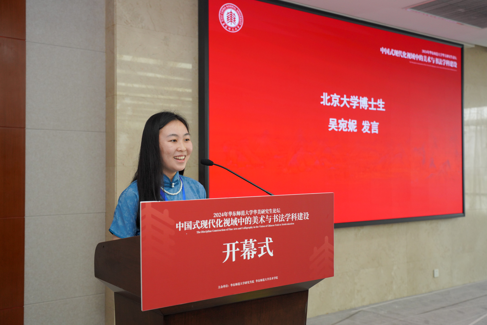 北京大学博士生吴宛妮代表华美研究生论坛的入选论文作者,向会务组表达了感谢之情。她期待华东师大提供的宝贵的学术交流平台将有助于青年学子激荡思想、增加智识,展现青年力量,共同面对挑战。