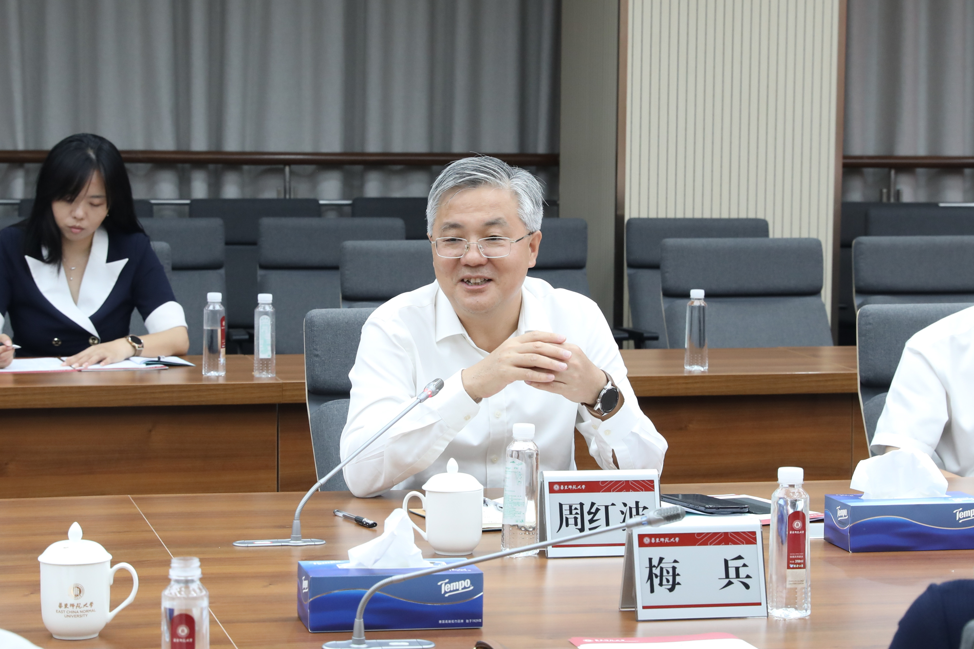 7月3日,海南省委常委、三亚市委书记周红波一行来华东师大交流访问。华东师大党委书记梅兵与周红波一行座谈交流,校党委常委、副校长施国跃主持座谈会。