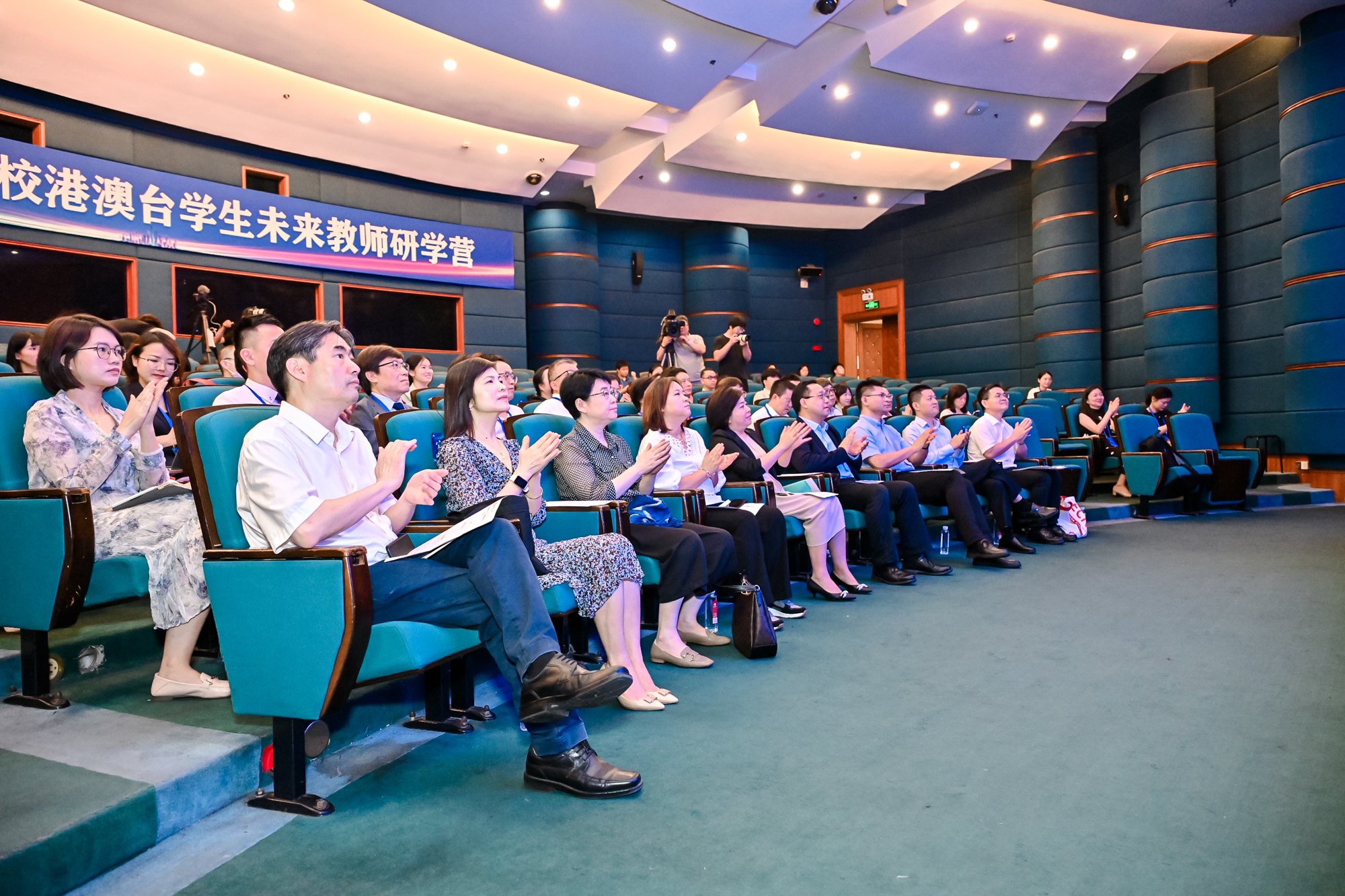 随后,与会领导向研学营学生代表授旗。第二届全国高校港澳台学生未来教师研学营正式开营。