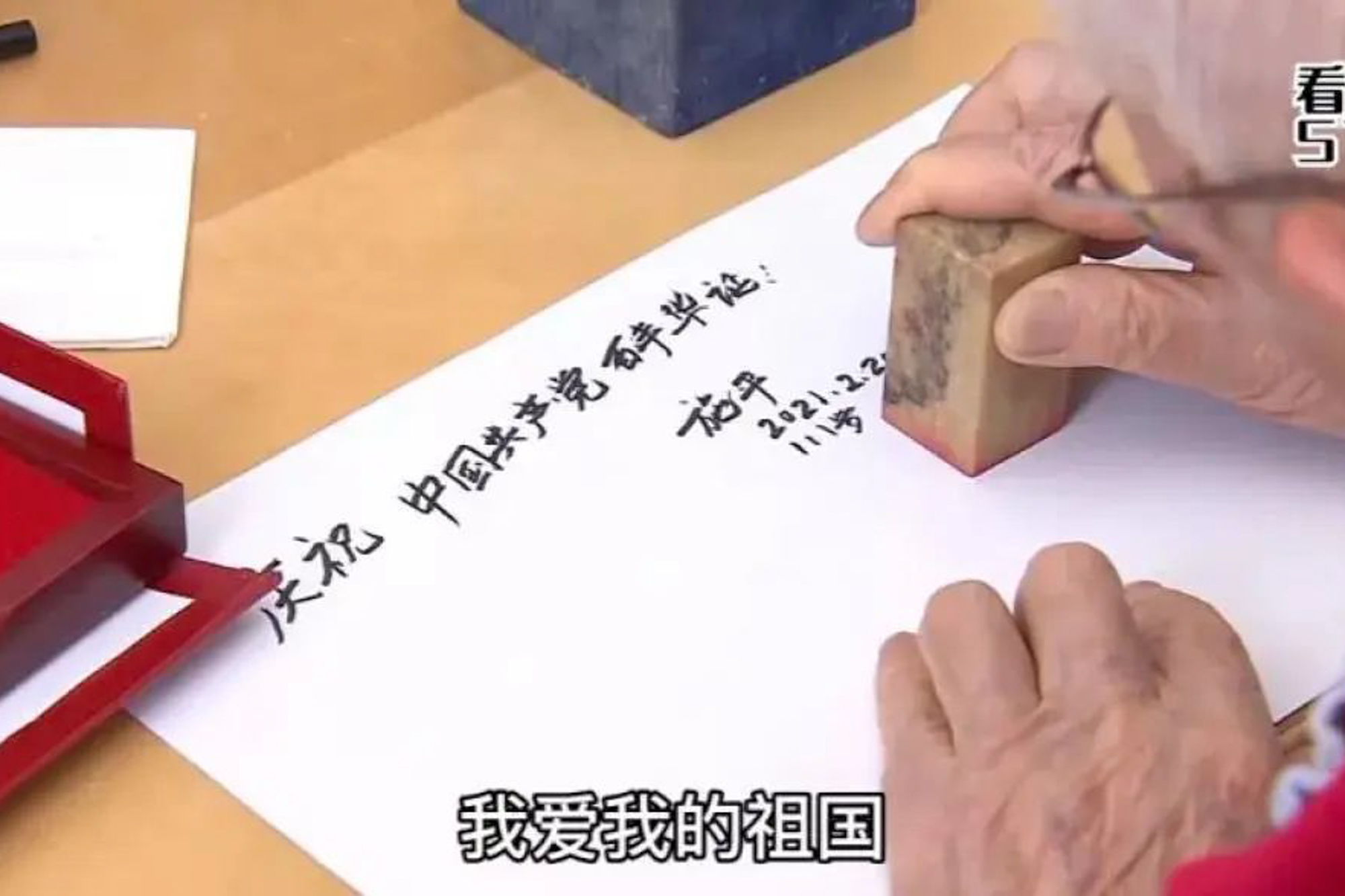 2021年,读完习近平总书记回信后,施平写下对百岁大党的美好祝愿