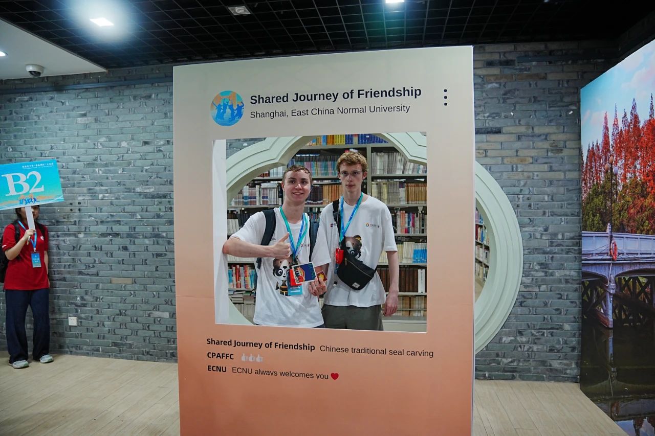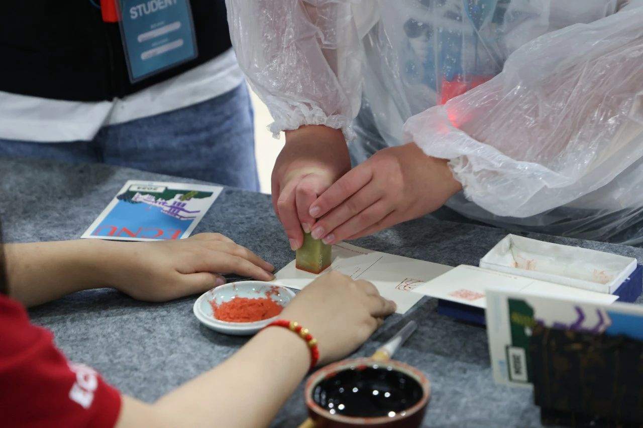 步入中华文化体验区,耳畔悠扬着华东师大学子倾情演绎的民乐,目光所及便是华东师大交流团师生精心准备的“ECNU校园主题2024明信片”,斑斓色彩凝聚着设计学院学生的巧思,特配的五方“和”字篆刻章由美术学院学生悉心雕琢,以书入印,象征中美友谊长存。
