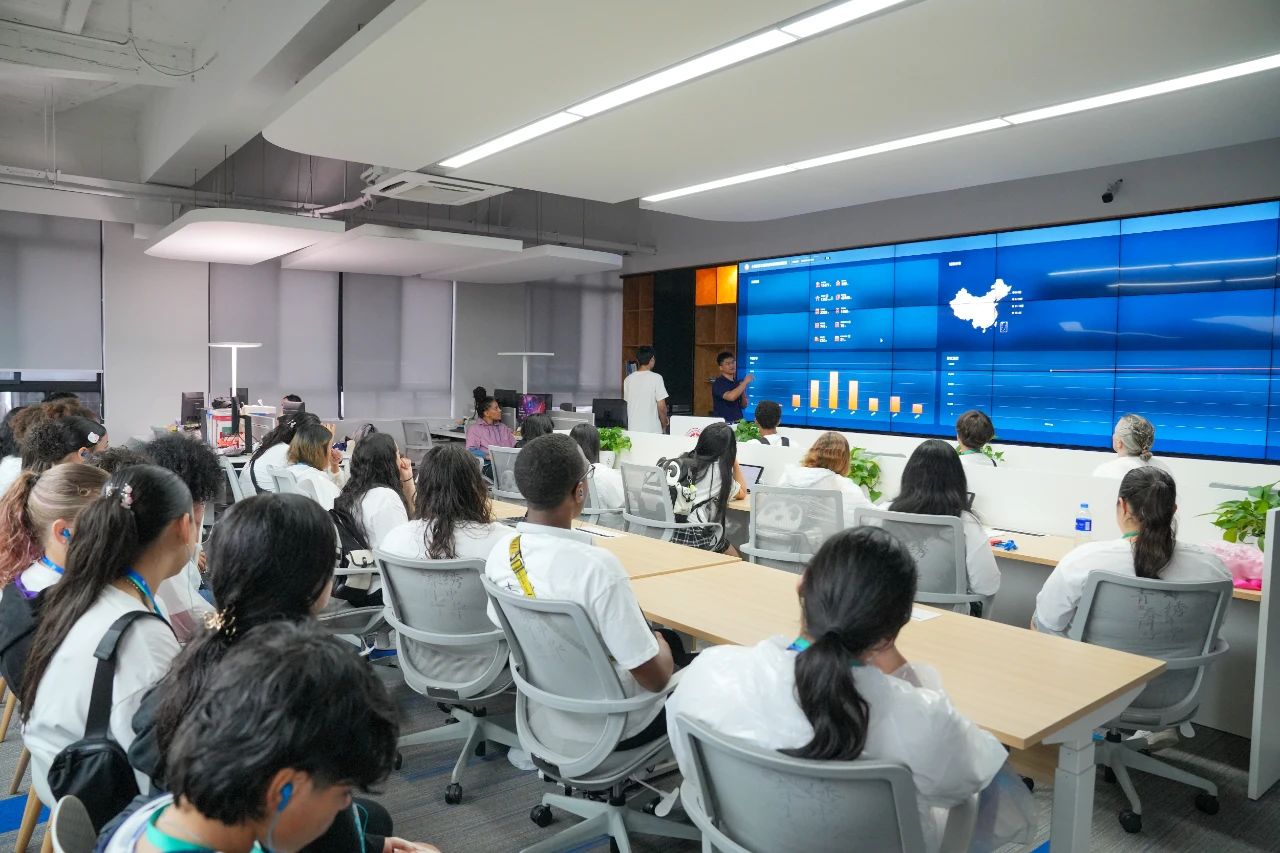 上海智能教育研究院内,郑蝉金副教授向美国交流团师生阐释“有温度的智能教育”理念,介绍华东师大以人工智能技术创新教育模式的前沿探索,展示快乐机器人、小花狮作文智能辅导系统等代表性成果,期待中美两国年轻一代共同推动人工智能技术发展,携手造福全人类。
