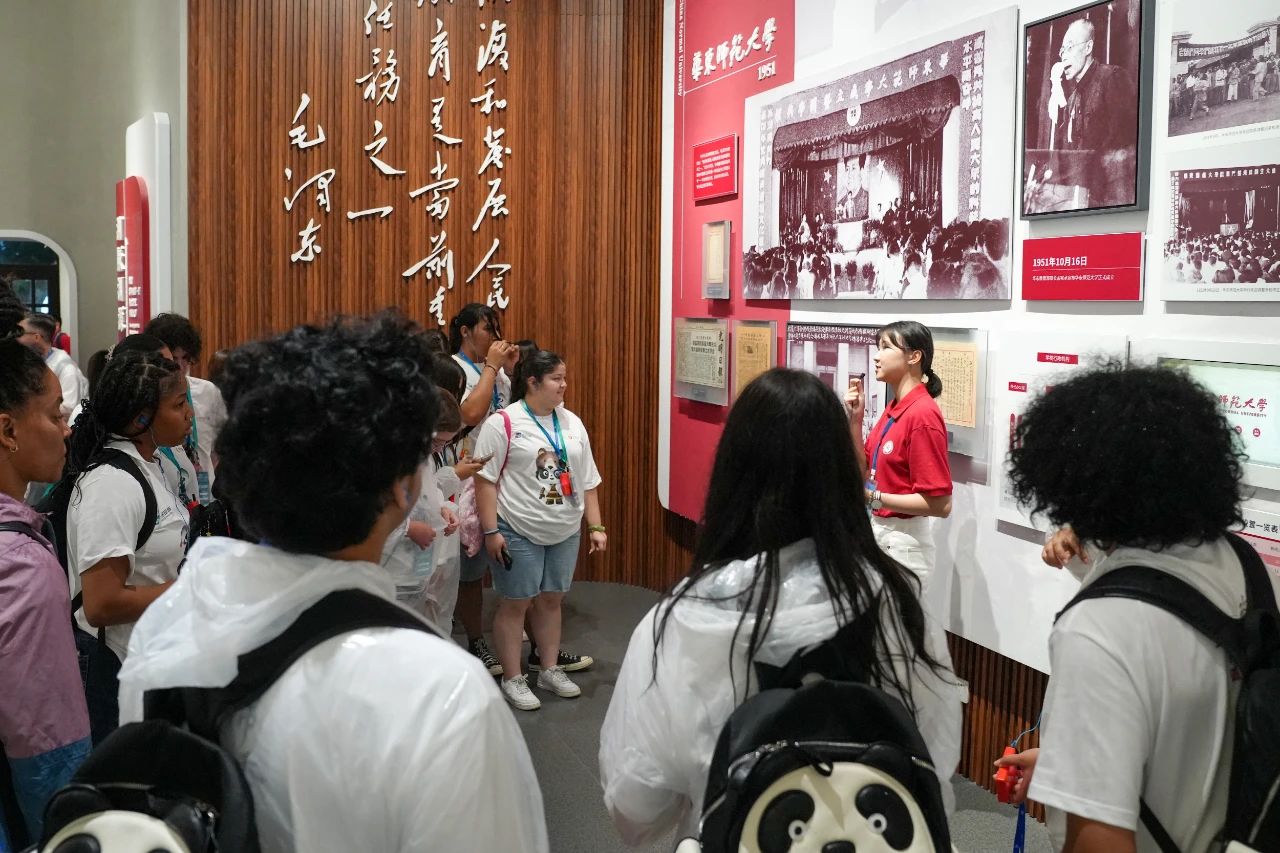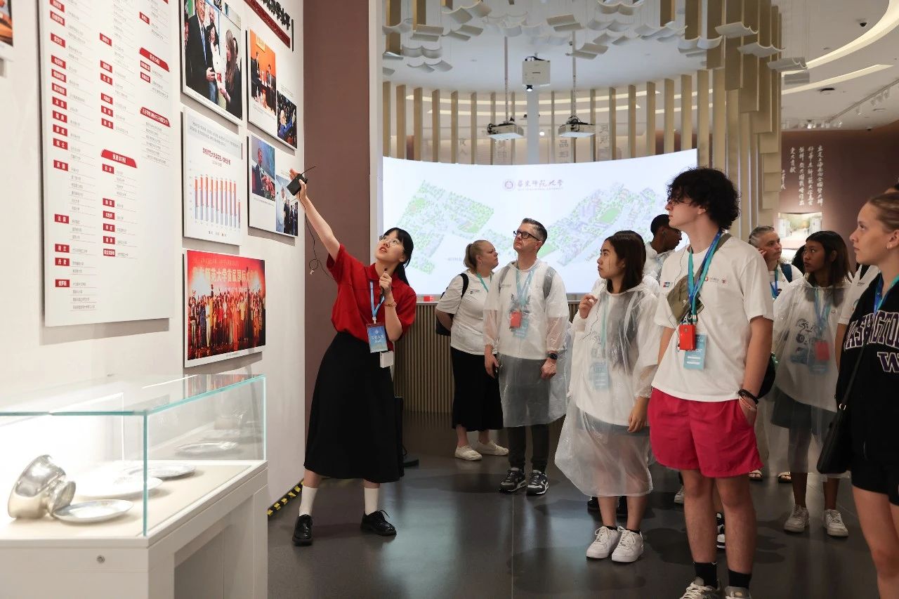 坐标上海市中山北路3663号,走进群贤堂、思群堂、校史馆、办公楼、丽娃河、中华文化体验区、上海智能教育研究院……尽管天公不作美,却丝毫未减来自美国的青年学子们对师大这片学术热土的满腔热情。