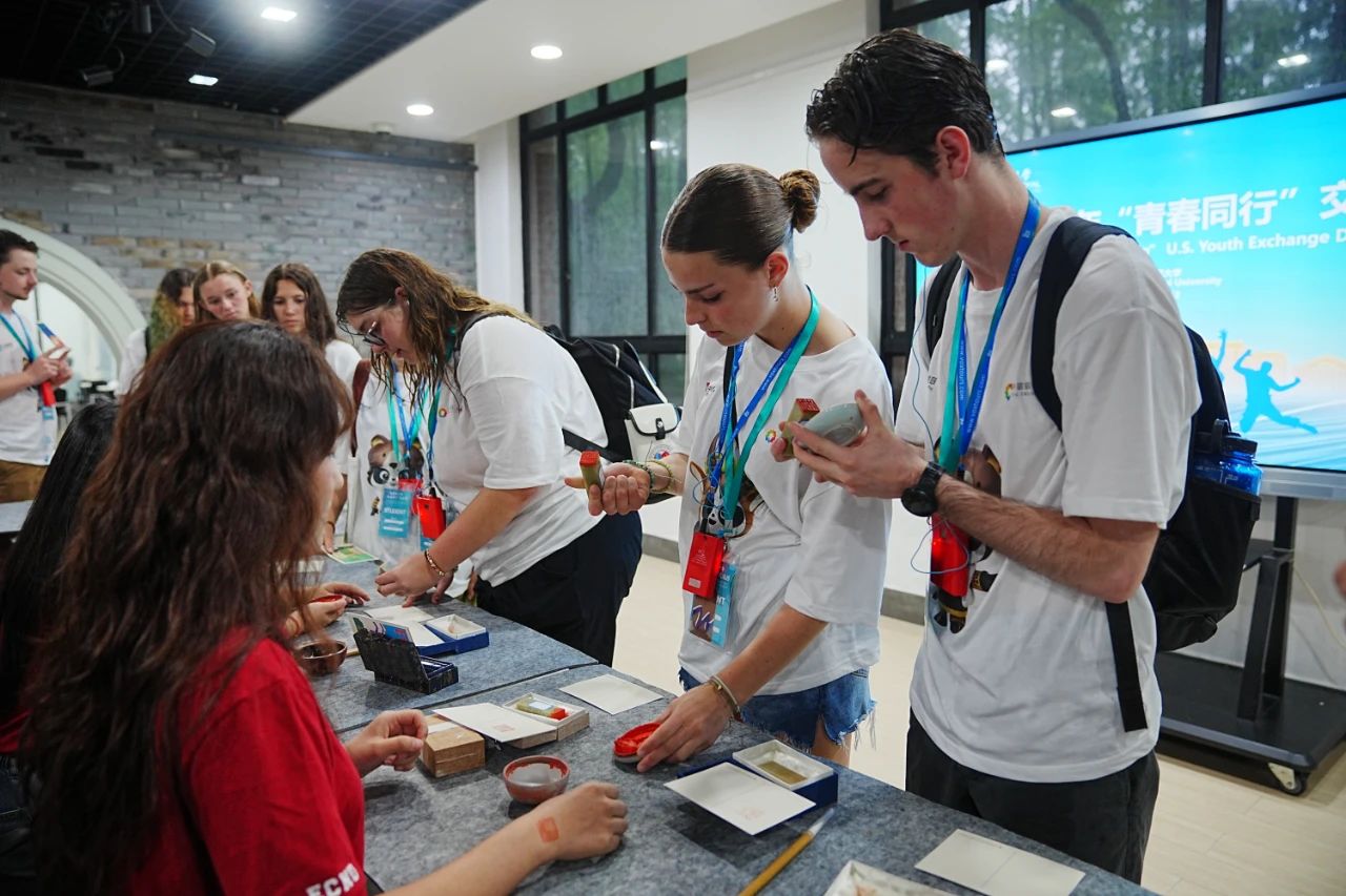 “和”字篆刻章由美术学院学生悉心雕琢,以书入印,象征中美友谊长存