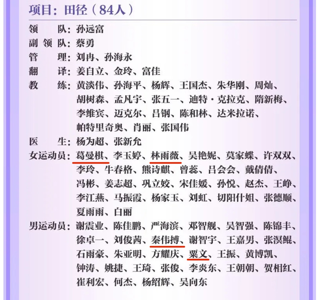 巴黎奥运会中国体育代表团名单(部分)