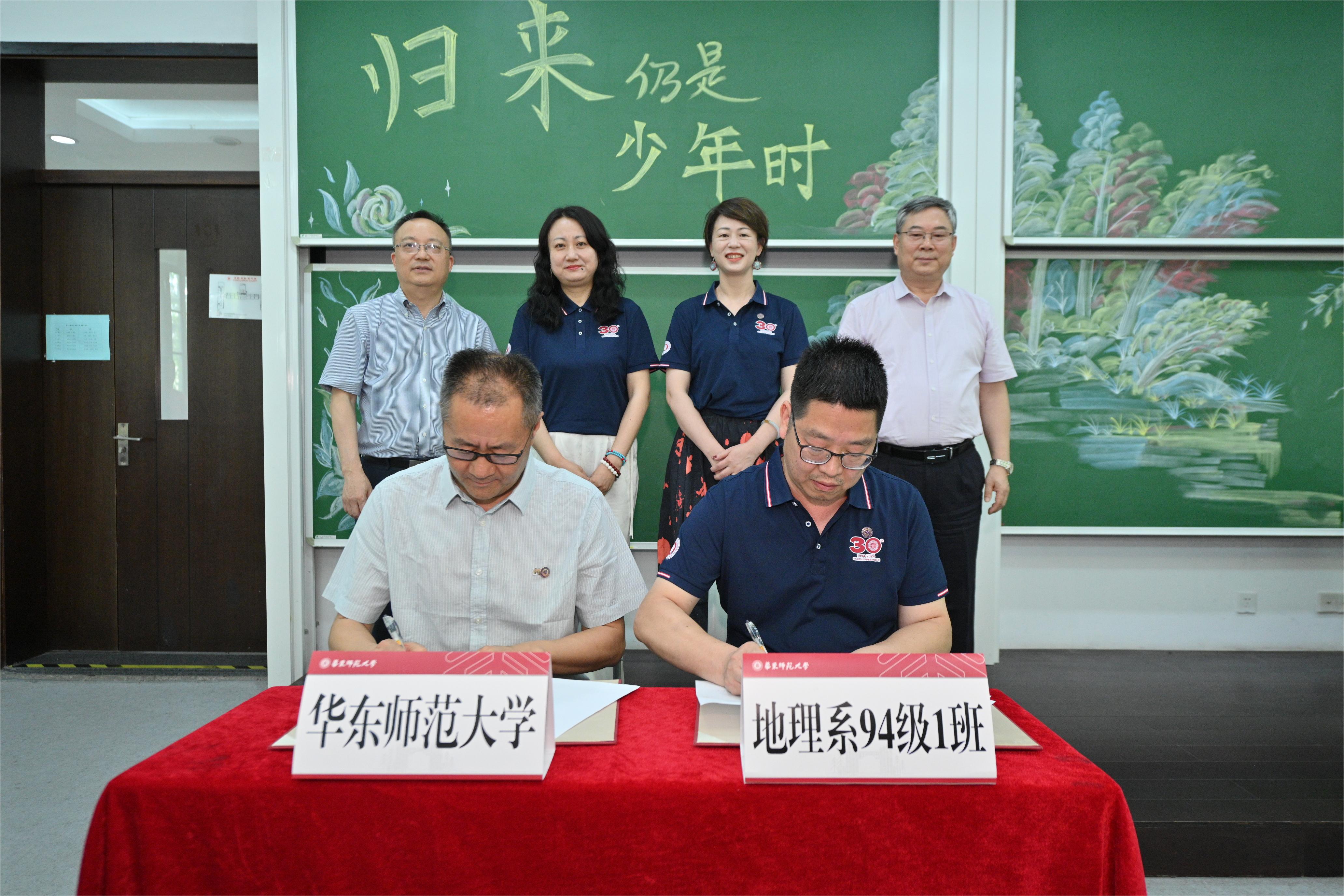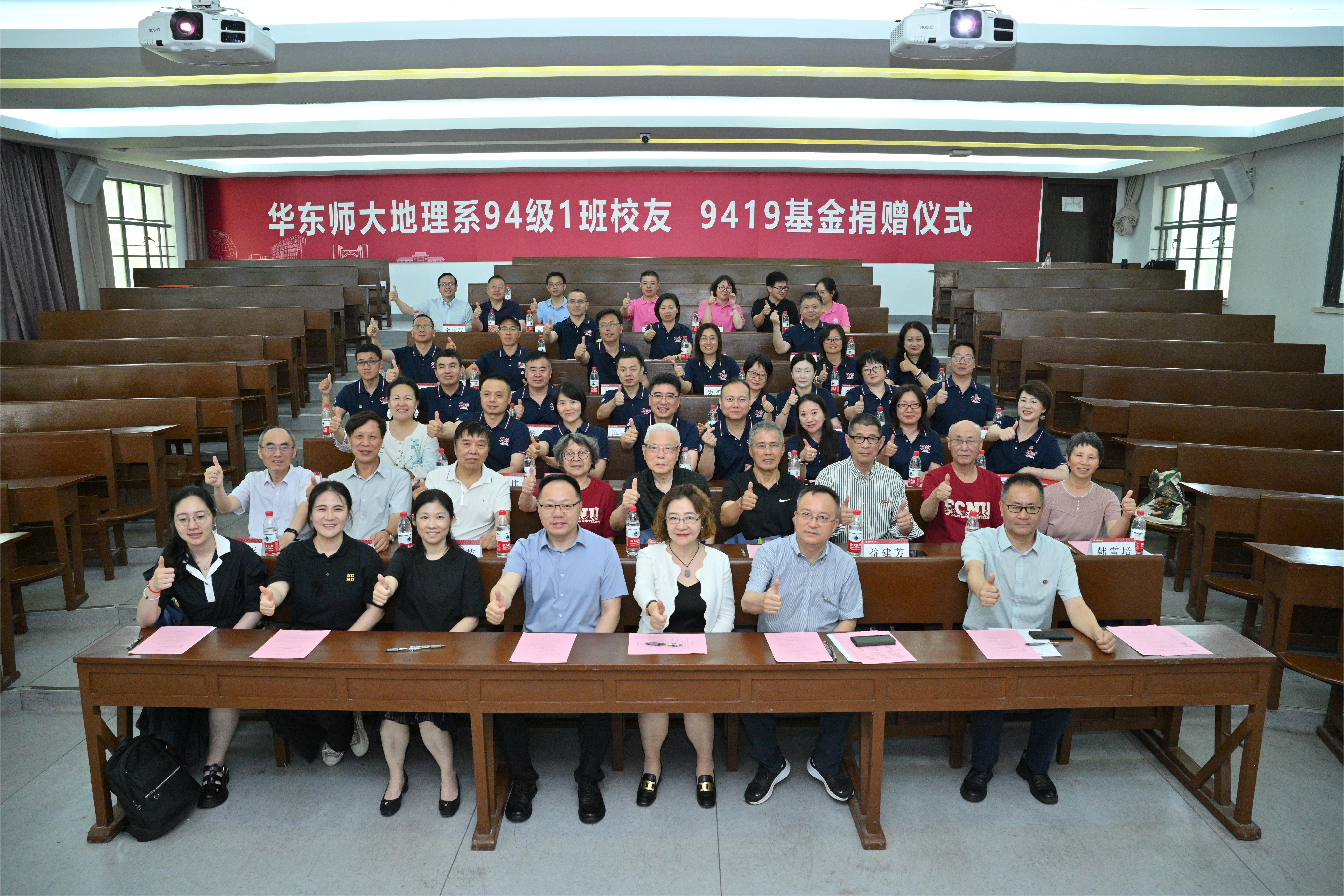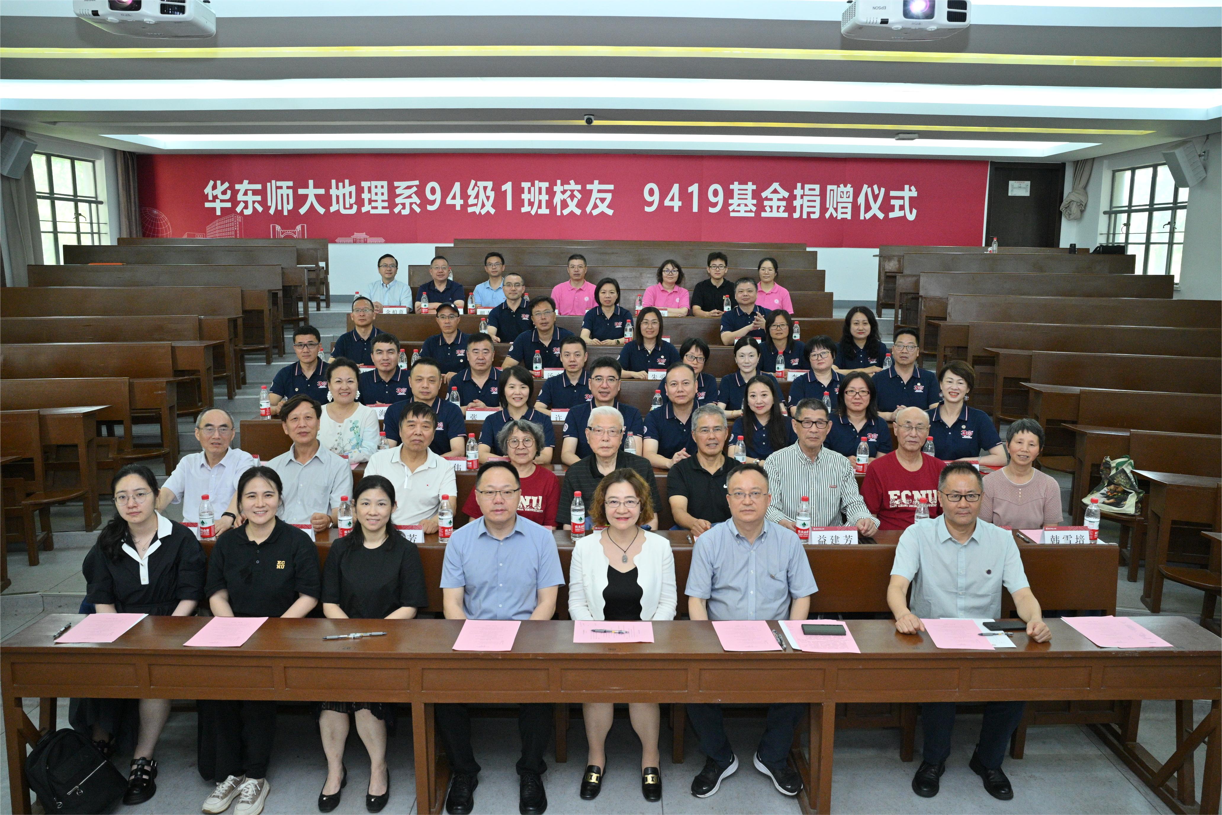 同一天,澳门永利皇宫官网入口原地理系94级1班的校友们捐资513.2万元设立“9419基金”,以此回馈母校,支持地理科学学院的持续发展。在捐赠仪式上,94级1班班长卢明森与华东师大教育发展基金会秘书长任开蕾代表双方签署了捐赠协议,副校长雷启立向捐赠代表颁发捐赠证书。