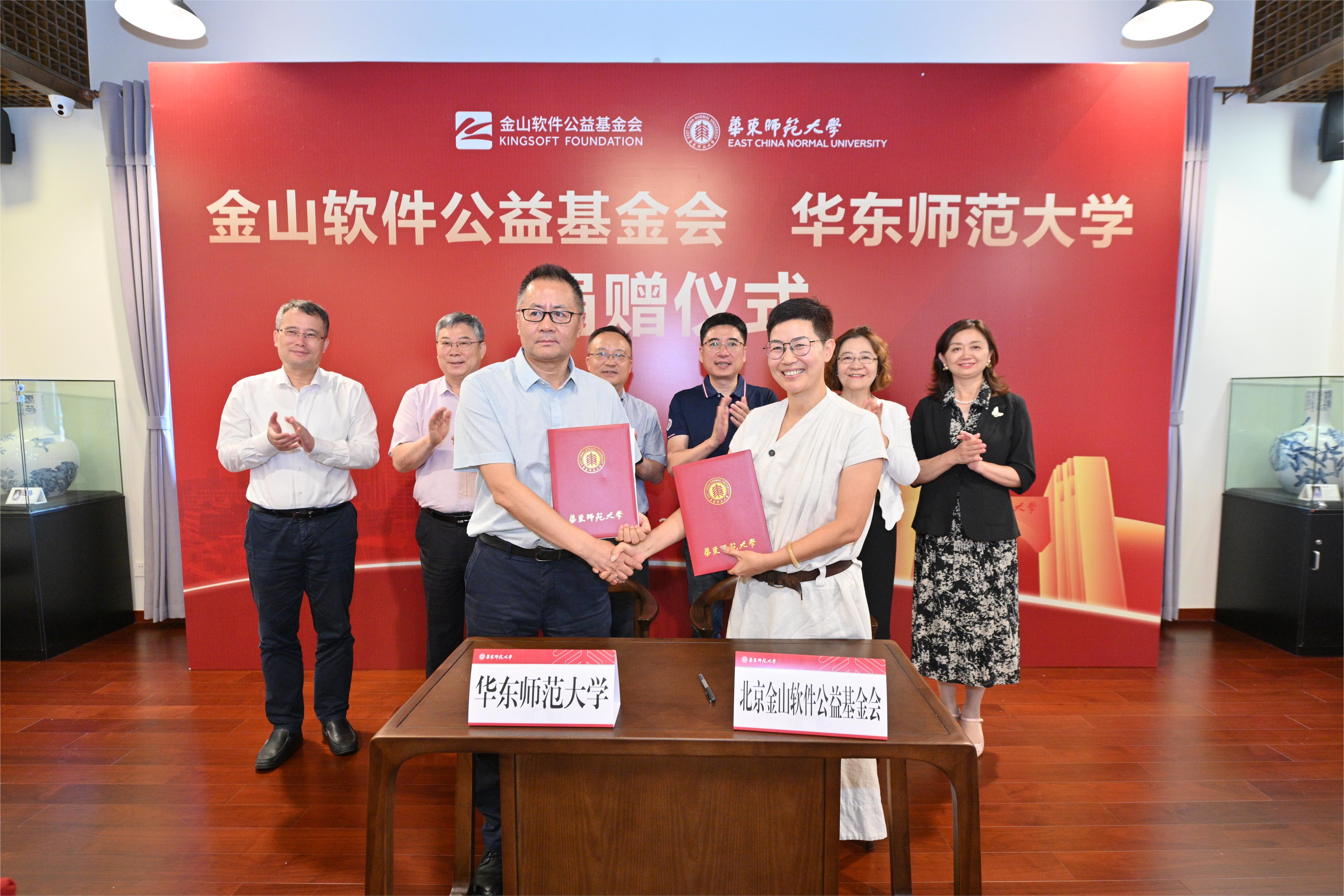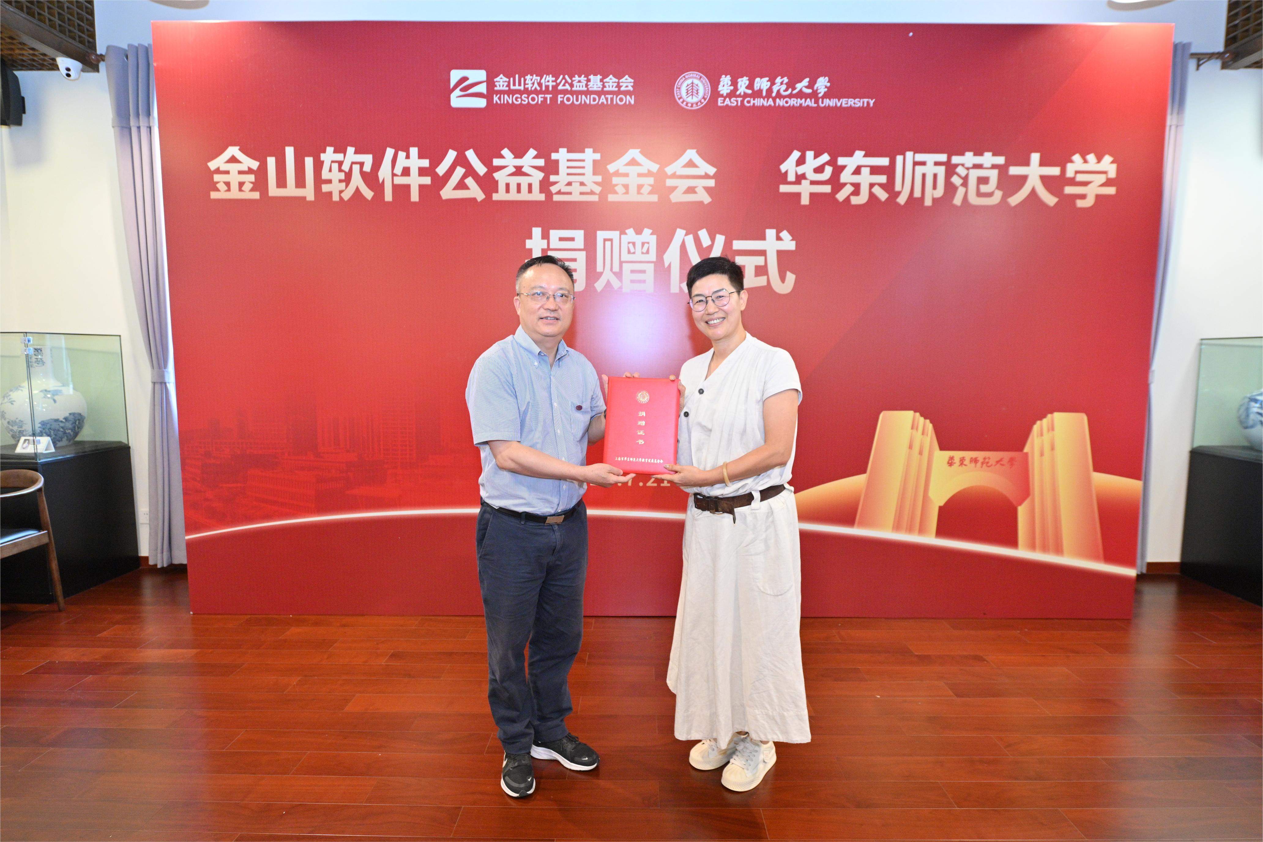 金山软件公益基金会副理事长求伟芹与校基金会秘书长任开蕾代表双方签署捐赠协议