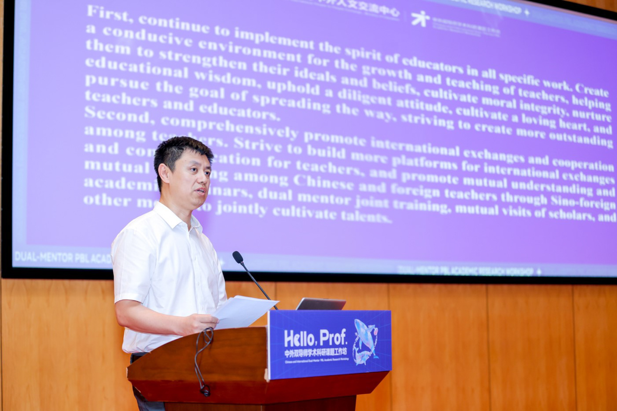 于长学表示,为深入贯彻落实党的二十大精神,深化教育领域中外人文交流与合作,助力高校一体推进教育、科技、人才培养,高层次项目积极引入世界一流教育资源和创新要素,在项目框架内组织实施“中外双导师学术科研课题工作坊”,迄今已促成超过350对中外导师结对辅导3700余名学生开展课题研究。2024年高层次项目继续组织实施工作坊,并设立了奖学金,旨在让工作坊惠及更多学生,推动中外师生交流互鉴、教学相长,促进中外高校学术科研合作。希望工作坊的中外导师充分交流,共同带领学员不断探索未知;希望学员珍惜机会,以开放多元的思维方式,收获智慧与灵感。