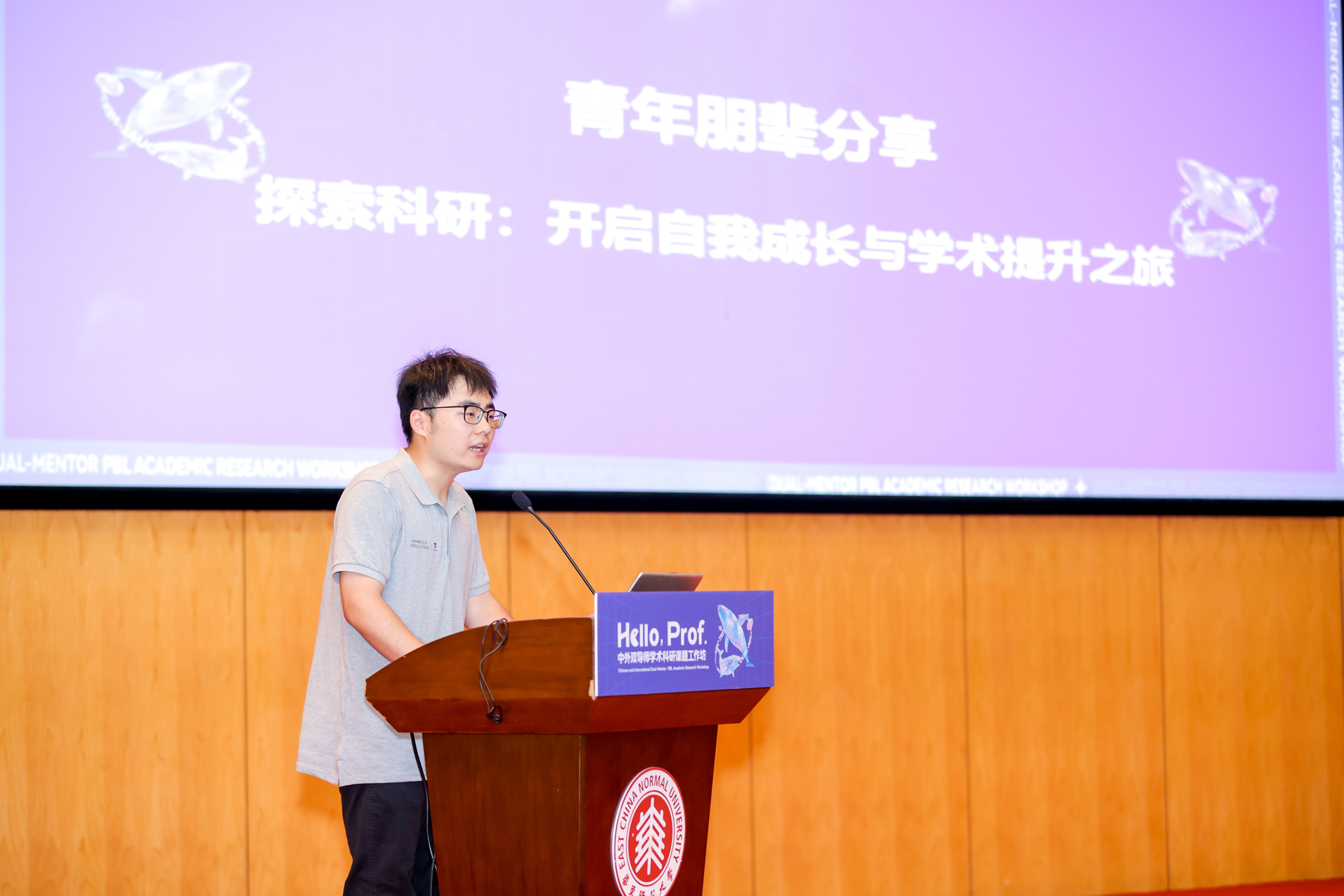 在青年朋辈分享环节,来自澳门永利皇宫官网入口外语学院的祁芊芊和来自康奈尔大学的何贤达分别作为优秀学员和助教代表分享了科研学习的经验,并鼓励新学员们珍惜工作坊这一宝贵平台,提升学术能力、实现自我成长。