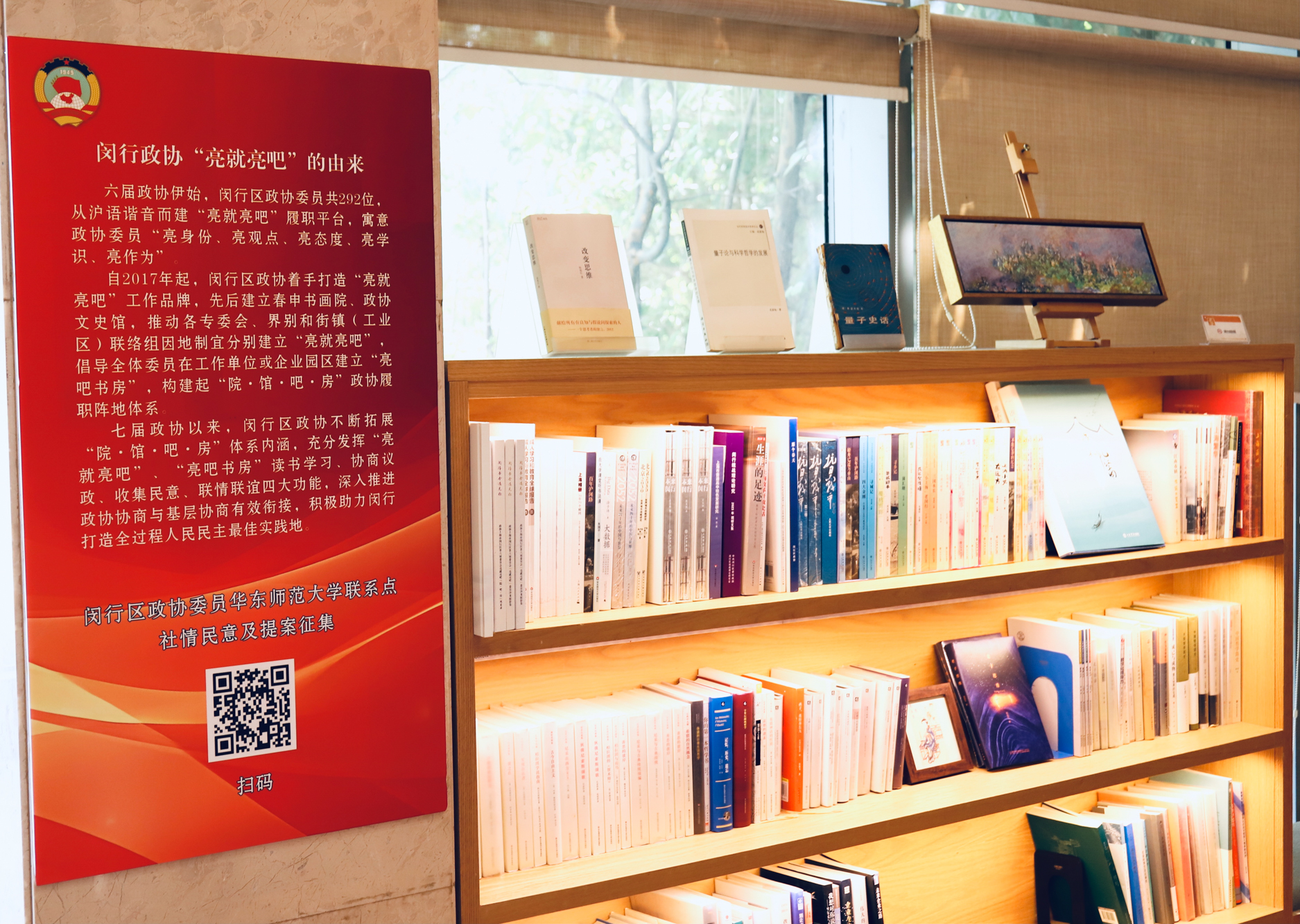 “亮就亮吧”是闵行区政协自第六届委员会起,为政协委员“亮身份、亮观点、亮态度、亮学识、亮作为”设立的一个工作平台。为了更好的打造“亮就亮吧”的品牌,先后形成了“院、馆、吧、房”等政协委员的履职阵地。此次在华师大教师之家知先堂设立的“亮吧书房”,汇聚华东师大的学术高地的特色,打造政协委员在校内的联系点,收集教师、学生和社区居民的社情民意、提案和议案,委员们精心布置,特意在书房一角留下了征集意见的二维码。