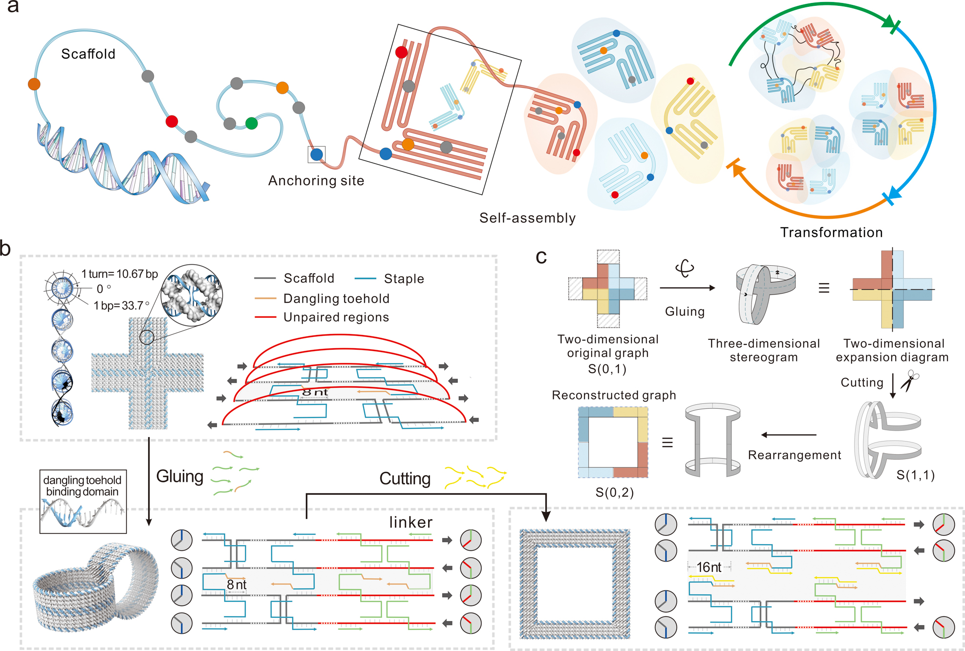 化学与分子学院裴昊教授与上海交通大学樊春海院士于近期合作开发了一种拓扑编程的DNA折纸系统,这种拓扑变构的DNA折纸可形成动态支架在纳米尺度上编码信号节点的连接模式与连通性,建立拓扑图形计算新模式。研究成果以“在拓扑编程DNA折纸上编码信号传播(Encoding signal propagation on topology-programmed DNA origami)”为题,于6月17日发表在《自然·化学》( Nature Chemistry)杂志。