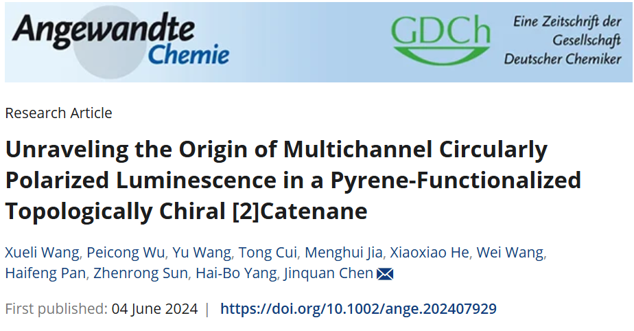 分子运动对核心生命过程至关重要,激发了对人工分子机器的研究。其中,机械互锁分子被誉为构建分子机器的理想蓝图或基础构件,特别是具有圆偏振发光性的互锁分子,可拓展其在生物医学和光学中的应用。但由于缺乏有效的实验手段实现对圆偏振发光动力学的实时监测,限制了相关研究。近日,精密光谱科学与技术国家重点实验室陈缙泉教授团队开发了国际上首台纳秒级圆偏振发光光谱系统,实现了对特定分子体系圆偏振发光机制的解析,相关成果发表在Angew. Chem. Int. Ed。