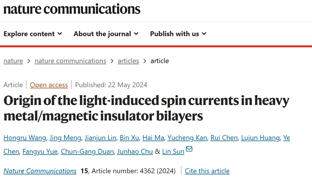研究成果以Origin of the light-induced spin currents in heavy metal/magnetic insulator bilayers为题在Nature Communications在线发表。孙琳教授为通讯作者,研究生王鸿如为本文的第一作者。