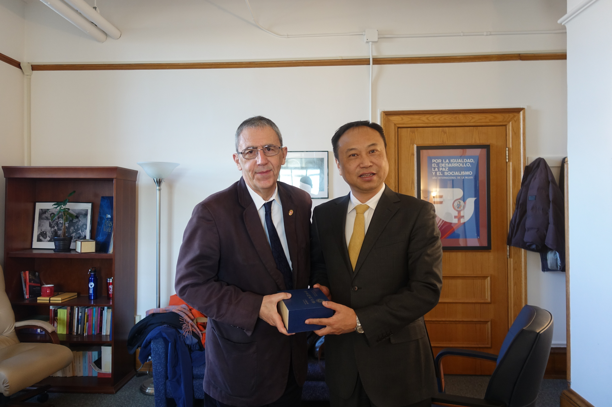 威斯康辛大学麦迪逊分校副教务长兼国际交流处处长Guido Podesta与副校长戴立益互赠礼物