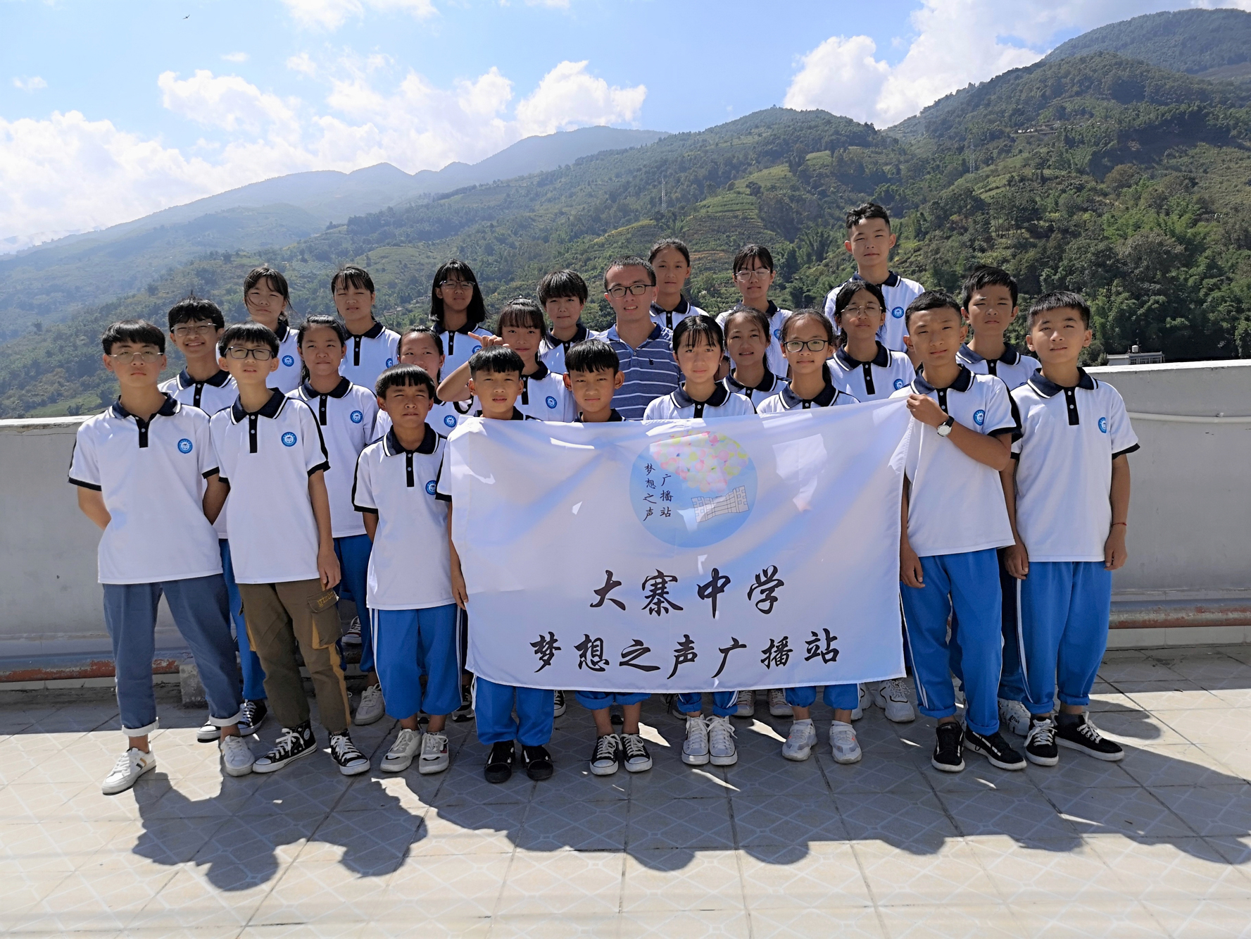 李微楠与梦想之声广播站学生合影