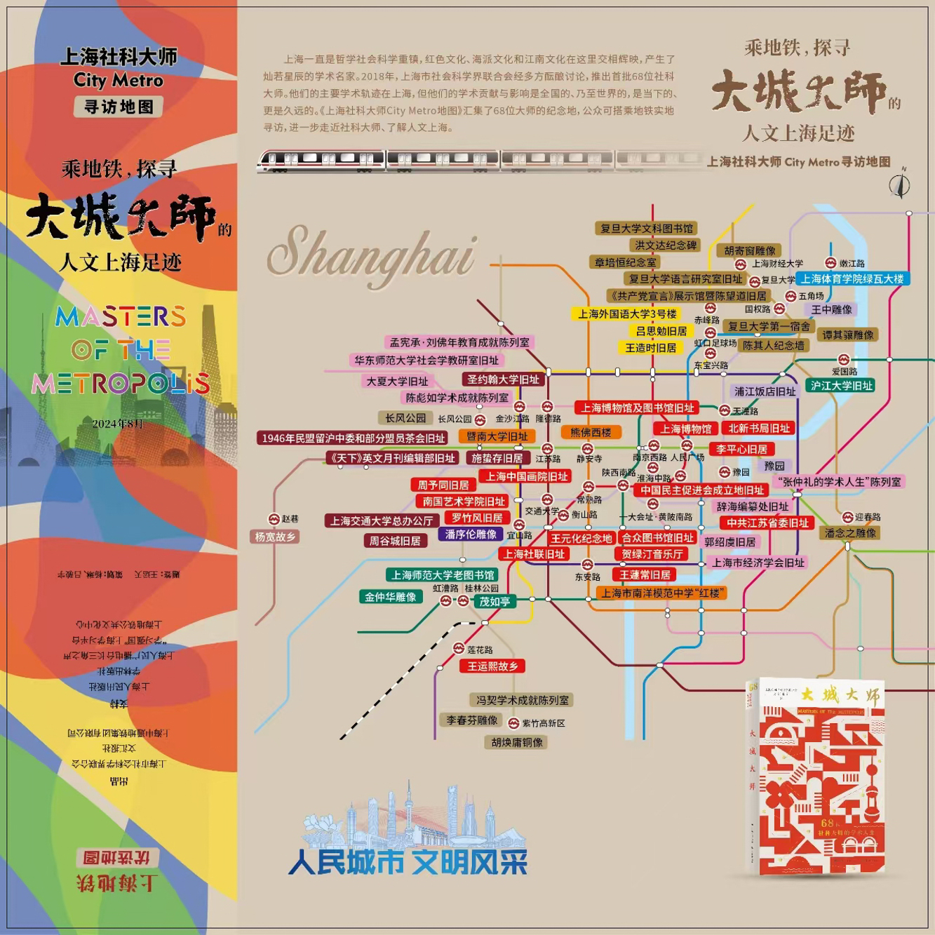 《上海社科大师City Metro寻访地图》8月17日起,包括金沙江路站地铁站等十个地铁车站,可免费领取到大师地图,限量5000份。开学后,主办方还向大师所属高校、研究机构赠送一批大师地图。