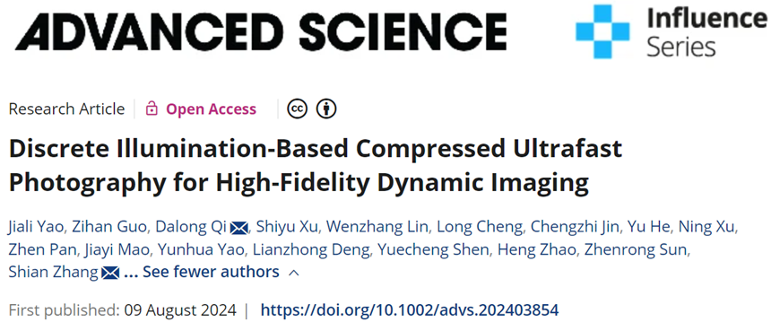 近日,澳门永利皇宫官网入口精密光谱科学与技术国家重点实验室齐大龙研究员、张诗按教授团队在高保真实时超快成像技术研究方面取得重要进展。相关研究成果以“Discrete illumination-based compressed ultrafast photography for high-fidelity dynamic imaging”为题,于2024年8月9日在线发表于国际顶级学术期刊Advanced Science(IF=14.3)。