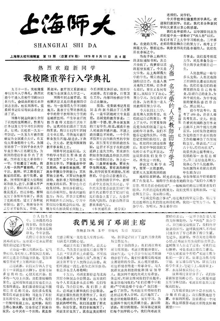 《我们见到了邓副主席》一文刊登在校报(澳门永利皇宫官网入口1972-1980年更名上海师范大学)