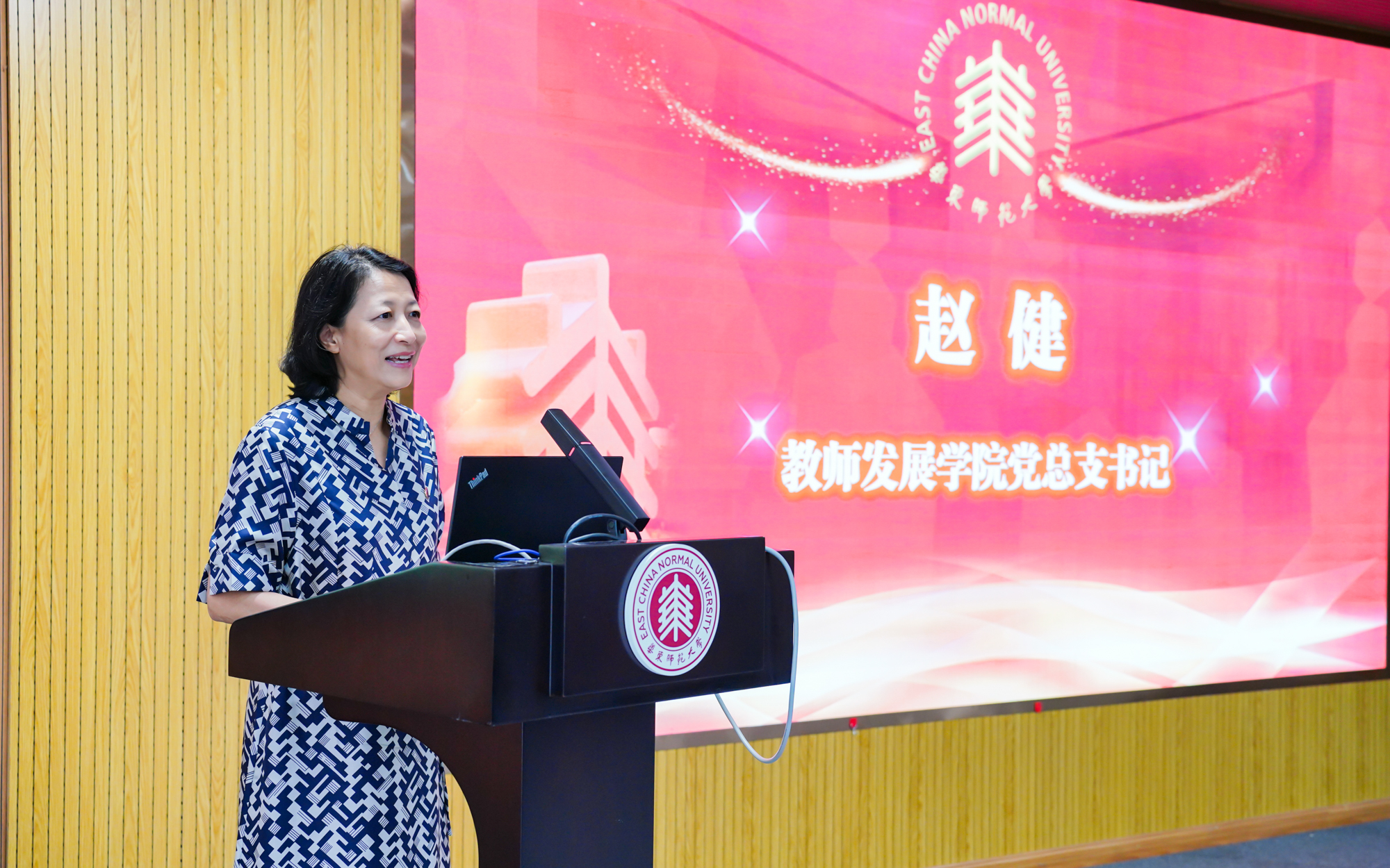 教师发展学院党总支书记赵健在致辞中介绍了学院的业务内容和工作特色,她表示学院将在培训中陪伴新同事走进师大历史深处,融入校园当下生态,拥抱学校未来发展愿景,并在未来持续做好服务。